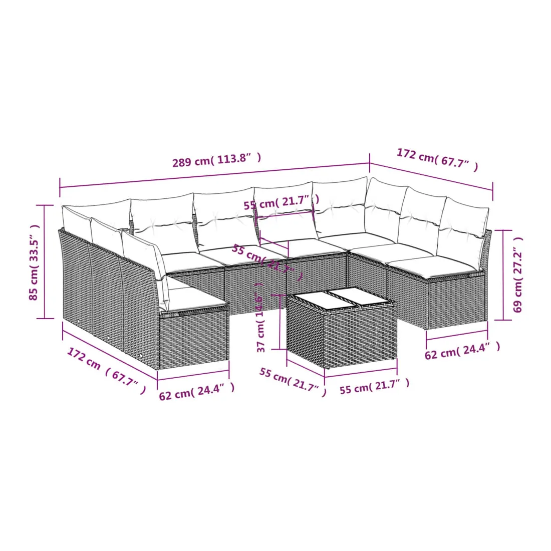 - 9 x coussin d'assise avec housse amovible et lavable