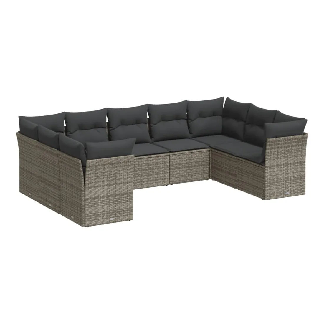Salon de jardin 9 pcs avec coussins gris résine tressée