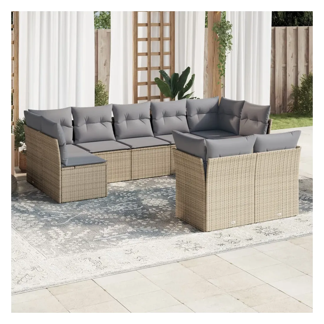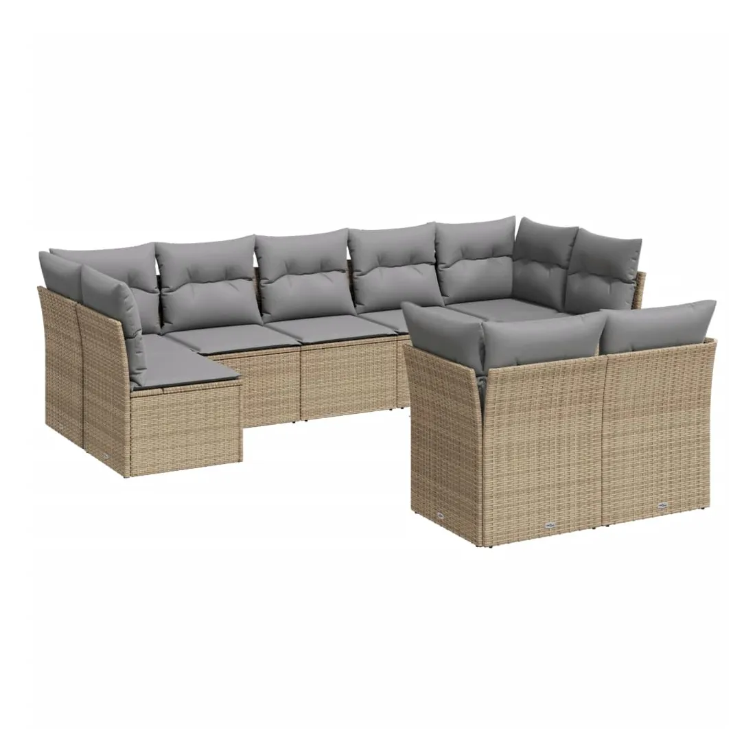 Salon de jardin avec coussins 9 pcs beige résine tressée