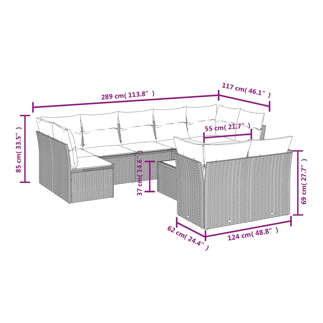 • 9 x coussin d'assise avec housse amovible et lavable