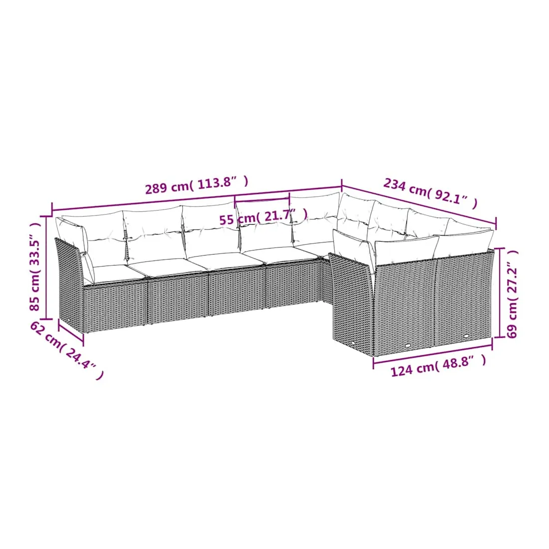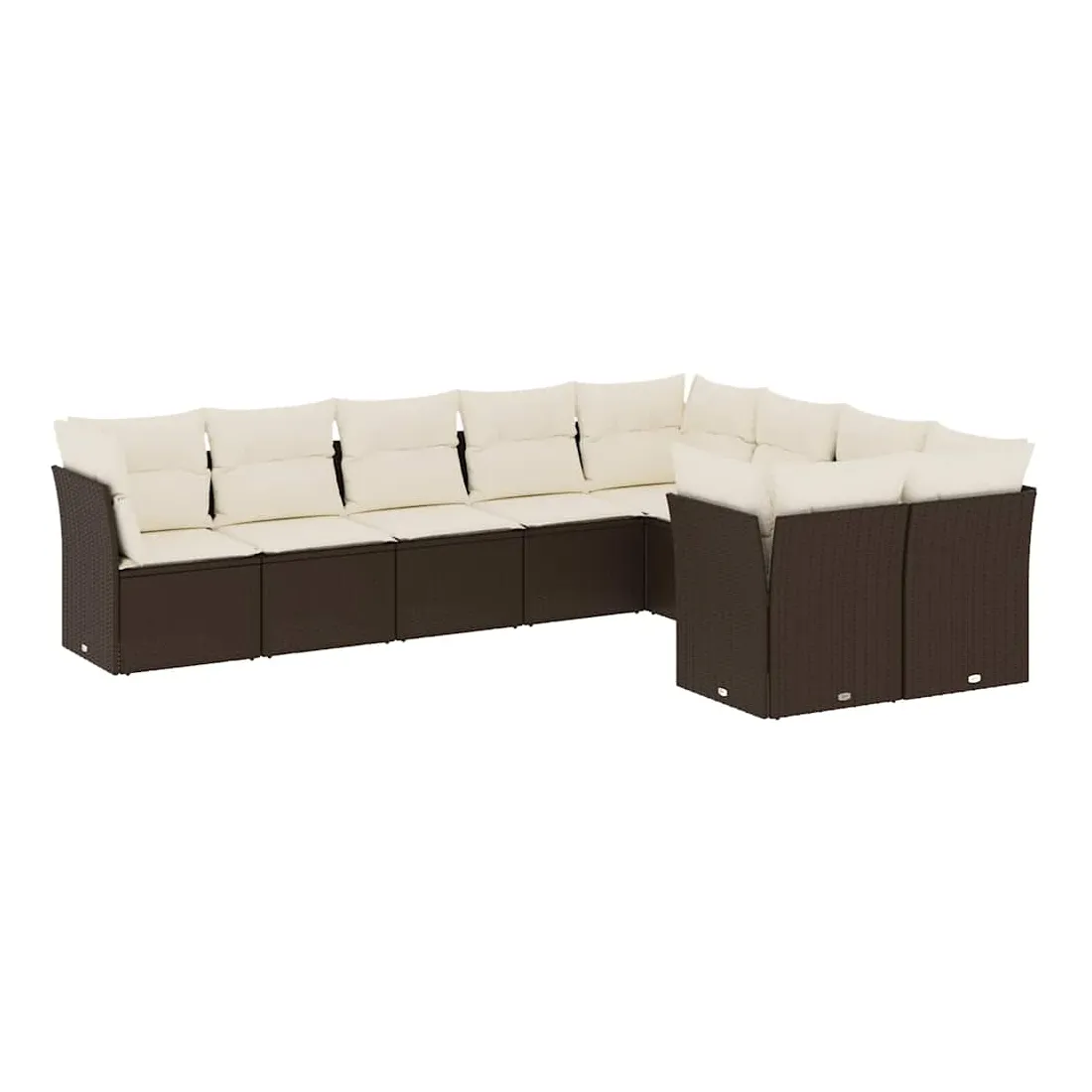 Salon de jardin avec coussins 9 pcs marron résine tressée