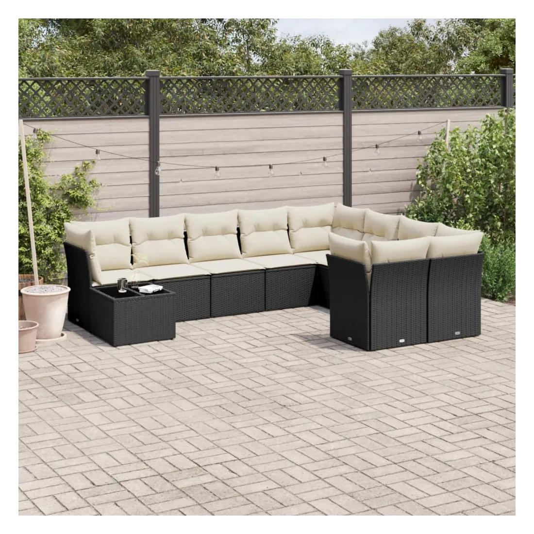 Cet ensemble de canapés de jardin est le complément parfait de votre arrière-cour, terrasse ou patio, offrant un espace confortable et accueillant pour discuter avec la famille et les amis ou simplement se détendre et profiter de l'extérieur. Matériau durable : la résine tressée, également connue sous le nom de poly rotin, est un matériau synthétique solide et nécessitant peu d'entretien qui ressemble au rotin naturel. Il est léger, facile à nettoyer et couramment utilisé pour les meubles d'extérieur en raison de sa durabilité et de ses propriétés de résistance aux intempéries.Expérience d'assise confortable : ce mobilier d'extérieur, doté de coussins épais, offre une expérience d'assise confortable.Dessus en verre : le dessus de la table d'extérieur est fabriqué en verre trempé solide et durable, ce qui le rend facile à nettoyer avec un chiffon humide et ajoute une touche d'élégance à votre espace extérieur.Housse amovible et lavable : ces coussins de siège sont dotés de housses amovibles pour un lavage et un entretien faciles.Conception modulaire : cet ensemble de meubles d'extérieur a une conception modulaire, ce qui le rend complètement flexible et facile à déplacer, afin que vous puissiez créer un agencement de meubles d'extérieur personnalisé. Bon à savoir :Pour que vos meubles d'extérieur restent beaux, nous vous recommandons de les protéger avec une housse imperméable.