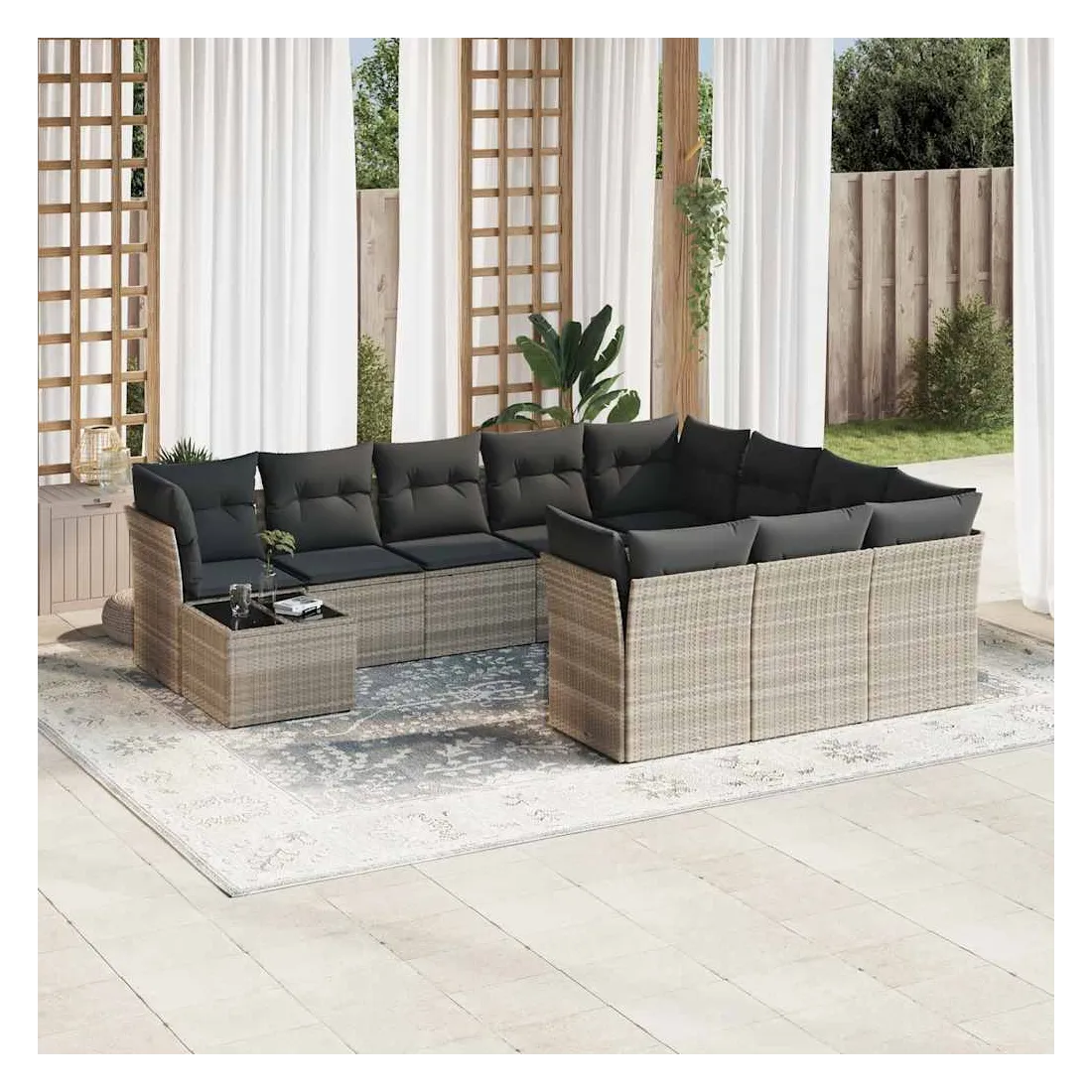 Cet ensemble de canapés de jardin est le complément parfait de votre arrière-cour, terrasse ou patio, offrant un espace confortable et accueillant pour discuter avec la famille et les amis ou simplement se détendre et profiter de l'extérieur. Matériau durable : la résine tressée, également connue sous le nom de poly rotin, est un matériau synthétique solide et nécessitant peu d'entretien qui ressemble au rotin naturel. Il est léger, facile à nettoyer et couramment utilisé pour les meubles d'extérieur en raison de sa durabilité et de ses propriétés de résistance aux intempéries.Expérience d'assise confortable : ce mobilier d'extérieur, doté de coussins épais, offre une expérience d'assise confortable.Dessus en verre : le dessus de la table d'extérieur est fabriqué en verre trempé solide et durable, ce qui le rend facile à nettoyer avec un chiffon humide et ajoute une touche d'élégance à votre espace extérieur.Housse amovible et lavable : ces coussins de siège sont dotés de housses amovibles pour un lavage et un entretien faciles.Conception modulaire : cet ensemble de meubles d'extérieur a une conception modulaire, ce qui le rend complètement flexible et facile à déplacer, afin que vous puissiez créer un agencement de meubles d'extérieur personnalisé. Bon à savoir :Pour que vos meubles d'extérieur restent beaux, nous vous recommandons de les protéger avec une housse imperméable.