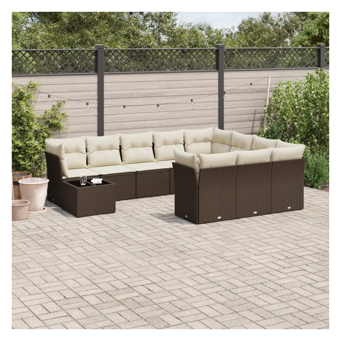 Cet ensemble de canapés de jardin est le complément parfait de votre arrière-cour, terrasse ou patio, offrant un espace confortable et accueillant pour discuter avec la famille et les amis ou simplement se détendre et profiter de l'extérieur. Matériau durable : la résine tressée, également connue sous le nom de poly rotin, est un matériau synthétique solide et nécessitant peu d'entretien qui ressemble au rotin naturel. Il est léger, facile à nettoyer et couramment utilisé pour les meubles d'extérieur en raison de sa durabilité et de ses propriétés de résistance aux intempéries.Expérience d'assise confortable : ce mobilier d'extérieur, doté de coussins épais, offre une expérience d'assise confortable.Dessus en verre : le dessus de la table d'extérieur est fabriqué en verre trempé solide et durable, ce qui le rend facile à nettoyer avec un chiffon humide et ajoute une touche d'élégance à votre espace extérieur.Housse amovible et lavable : ces coussins de siège sont dotés de housses amovibles pour un lavage et un entretien faciles.Conception modulaire : cet ensemble de meubles d'extérieur a une conception modulaire, ce qui le rend complètement flexible et facile à déplacer, afin que vous puissiez créer un agencement de meubles d'extérieur personnalisé. Bon à savoir :Pour que vos meubles d'extérieur restent beaux, nous vous recommandons de les protéger avec une housse imperméable.