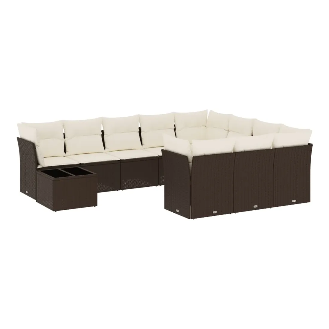 Salon de jardin et coussins 11 pcs marron résine tressée