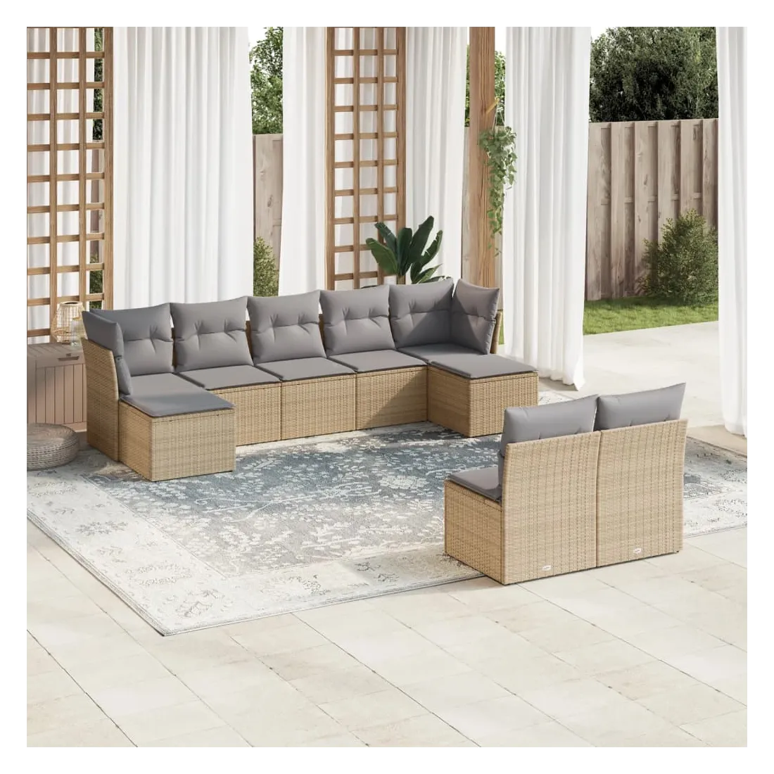 Cet ensemble de canapés de jardin est le complément parfait de votre arrière-cour, terrasse ou patio, offrant un espace confortable et accueillant pour discuter avec la famille et les amis ou simplement se détendre et profiter de l'extérieur. Matériau durable : la résine tressée, également connue sous le nom de poly rotin, est un matériau synthétique solide et nécessitant peu d'entretien qui ressemble au rotin naturel. Il est léger, facile à nettoyer et couramment utilisé pour les meubles d'extérieur en raison de sa durabilité et de ses propriétés de résistance aux intempéries.Expérience d'assise confortable : ce mobilier d'extérieur, doté de coussins épais, offre une expérience d'assise confortable.Housse amovible et lavable : ces coussins de siège sont dotés de housses amovibles pour un lavage et un entretien faciles.Conception modulaire : cet ensemble de meubles d'extérieur a une conception modulaire, ce qui le rend complètement flexible et facile à déplacer, afin que vous puissiez créer un agencement de meubles d'extérieur personnalisé. Bon à savoir :Pour que vos meubles d'extérieur restent beaux, nous vous recommandons de les protéger avec une housse imperméable.