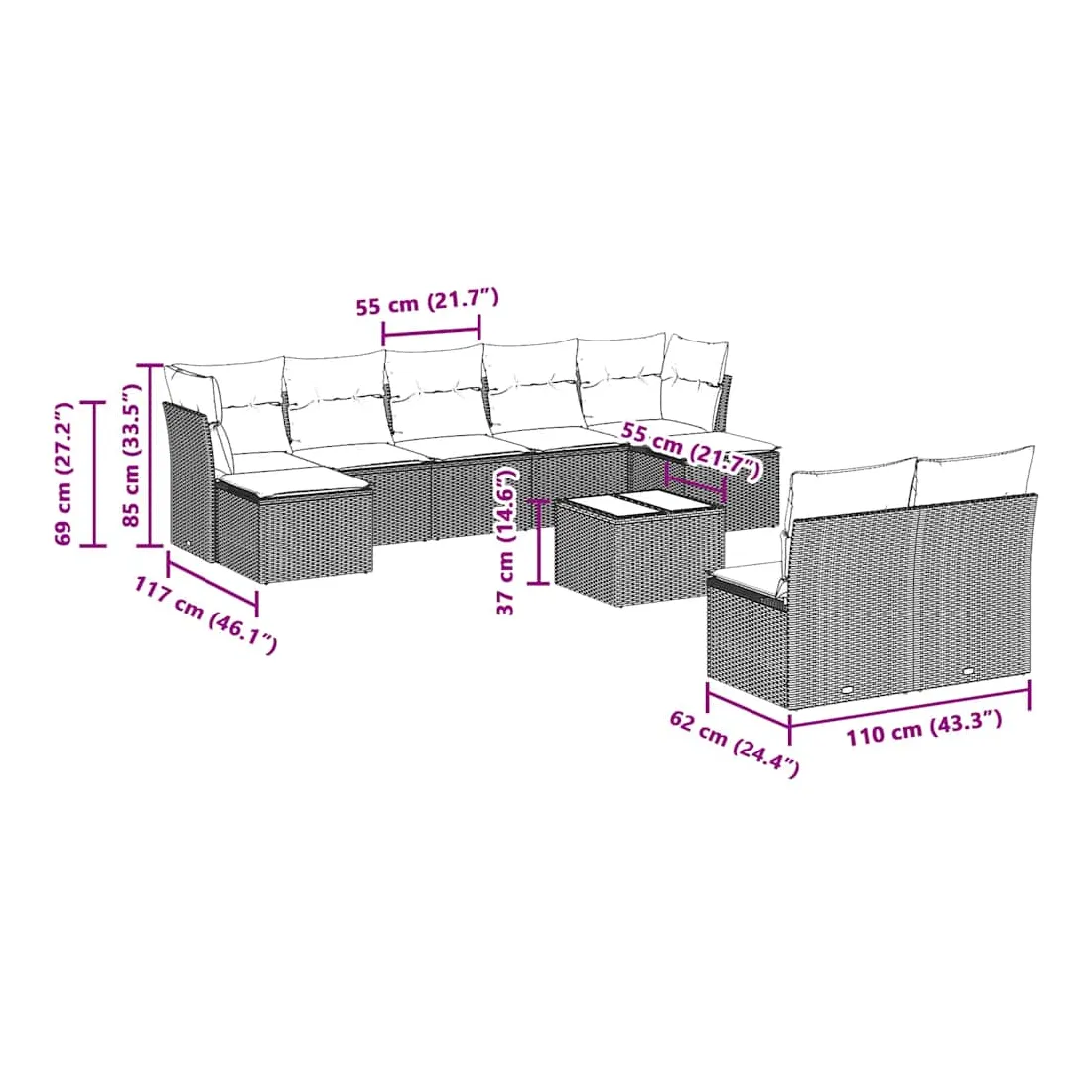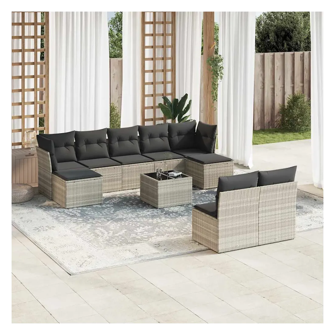 Cet ensemble de canapés de jardin est le complément parfait de votre arrière-cour, terrasse ou patio, offrant un espace confortable et accueillant pour discuter avec la famille et les amis ou simplement se détendre et profiter de l'extérieur. Matériau durable : la résine tressée, également connue sous le nom de poly rotin, est un matériau synthétique solide et nécessitant peu d'entretien qui ressemble au rotin naturel. Il est léger, facile à nettoyer et couramment utilisé pour les meubles d'extérieur en raison de sa durabilité et de ses propriétés de résistance aux intempéries.Expérience d'assise confortable : ce mobilier d'extérieur, doté de coussins épais, offre une expérience d'assise confortable.Dessus en verre : le dessus de la table d'extérieur est fabriqué en verre trempé solide et durable, ce qui le rend facile à nettoyer avec un chiffon humide et ajoute une touche d'élégance à votre espace extérieur.Housse amovible et lavable : ces coussins de siège sont dotés de housses amovibles pour un lavage et un entretien faciles.Conception modulaire : cet ensemble de meubles d'extérieur a une conception modulaire, ce qui le rend complètement flexible et facile à déplacer, afin que vous puissiez créer un agencement de meubles d'extérieur personnalisé. Bon à savoir :Pour que vos meubles d'extérieur restent beaux, nous vous recommandons de les protéger avec une housse imperméable.