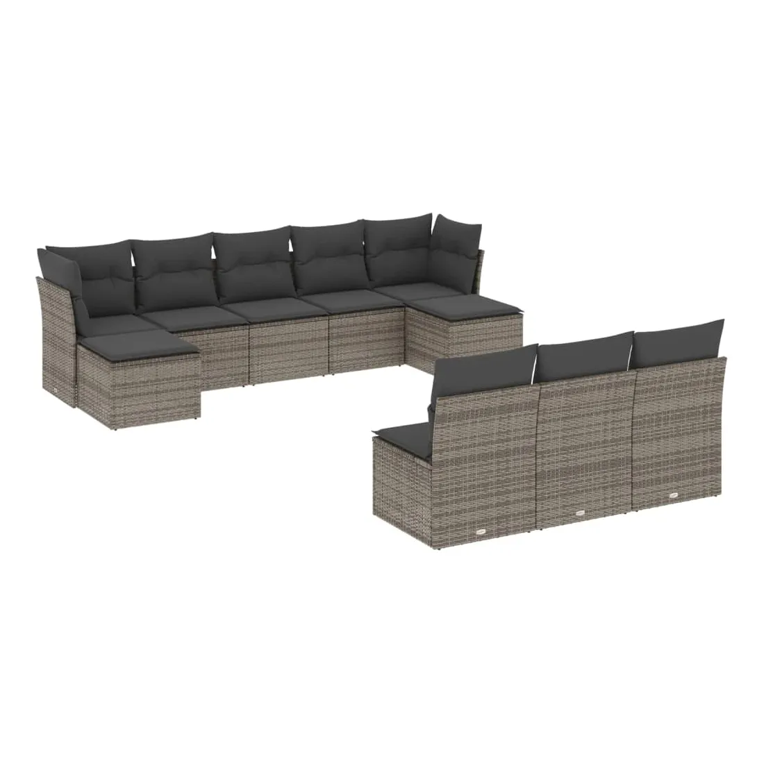 Cet ensemble de canapés de jardin est le complément parfait de votre arrière-cour, terrasse ou patio, offrant un espace confortable et accueillant pour discuter avec la famille et les amis ou simplement se détendre et profiter de l'extérieur. Matériau durable : la résine tressée, également connue sous le nom de poly rotin, est un matériau synthétique solide et nécessitant peu d'entretien qui ressemble au rotin naturel. Il est léger, facile à nettoyer et couramment utilisé pour les meubles d'extérieur en raison de sa durabilité et de ses propriétés de résistance aux intempéries.Expérience d'assise confortable : ce mobilier d'extérieur, doté de coussins épais, offre une expérience d'assise confortable.Housse amovible et lavable : ces coussins de siège sont dotés de housses amovibles pour un lavage et un entretien faciles.Conception modulaire : cet ensemble de meubles d'extérieur a une conception modulaire, ce qui le rend complètement flexible et facile à déplacer, afin que vous puissiez créer un agencement de meubles d'extérieur personnalisé. Bon à savoir :Pour que vos meubles d'extérieur restent beaux, nous vous recommandons de les protéger avec une housse imperméable.
