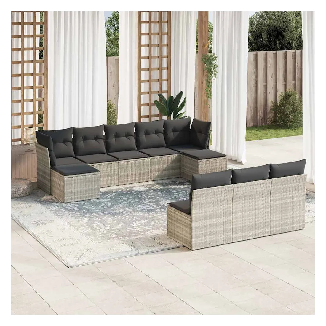 Cet ensemble de canapés de jardin est le complément parfait de votre arrière-cour, terrasse ou patio, offrant un espace confortable et accueillant pour discuter avec la famille et les amis ou simplement se détendre et profiter de l'extérieur. Matériau durable : la résine tressée, également connue sous le nom de poly rotin, est un matériau synthétique solide et nécessitant peu d'entretien qui ressemble au rotin naturel. Il est léger, facile à nettoyer et couramment utilisé pour les meubles d'extérieur en raison de sa durabilité et de ses propriétés de résistance aux intempéries.Expérience d'assise confortable : ce mobilier d'extérieur, doté de coussins épais, offre une expérience d'assise confortable.Housse amovible et lavable : ces coussins de siège sont dotés de housses amovibles pour un lavage et un entretien faciles.Conception modulaire : cet ensemble de meubles d'extérieur a une conception modulaire, ce qui le rend complètement flexible et facile à déplacer, afin que vous puissiez créer un agencement de meubles d'extérieur personnalisé. Bon à savoir :Pour que vos meubles d'extérieur restent beaux, nous vous recommandons de les protéger avec une housse imperméable.