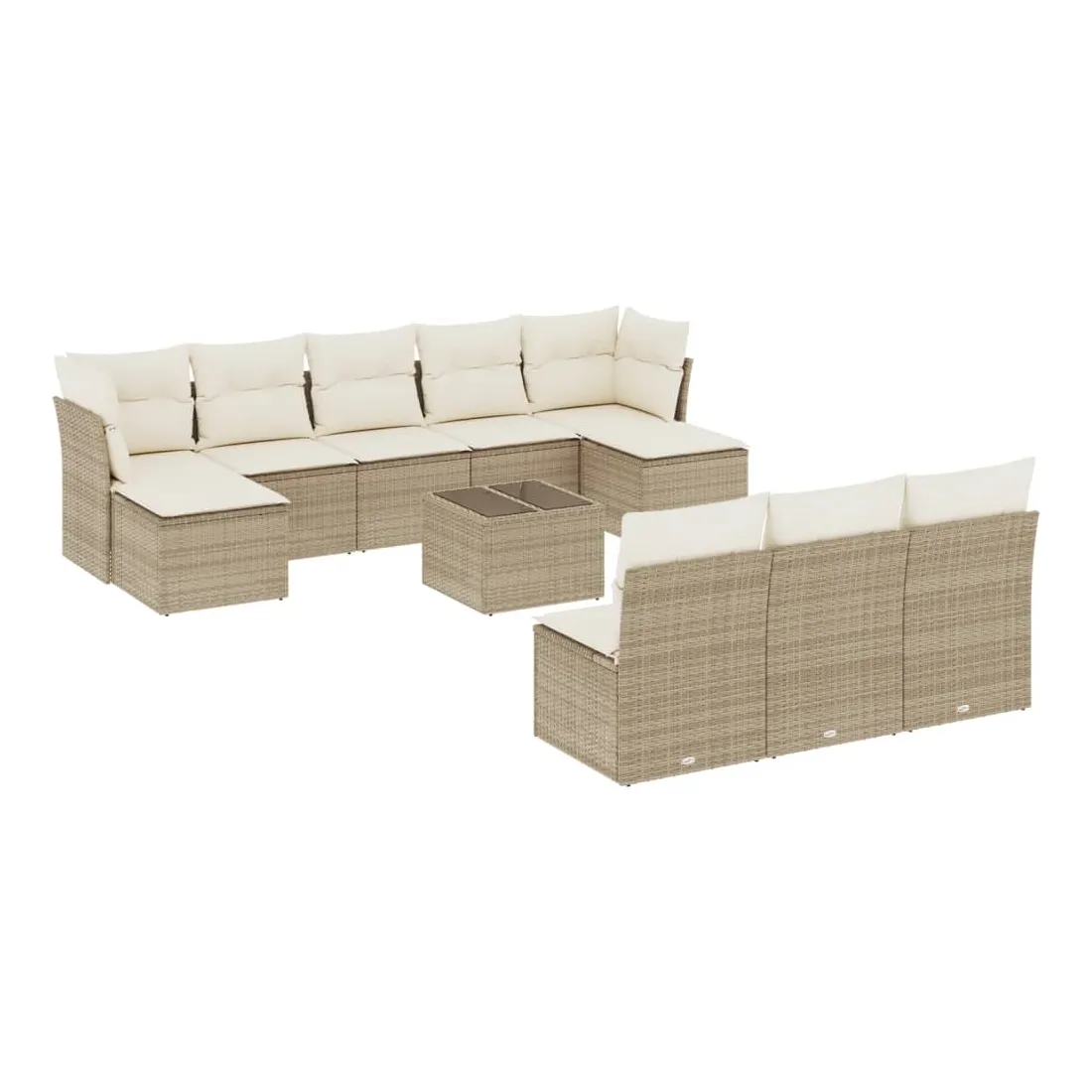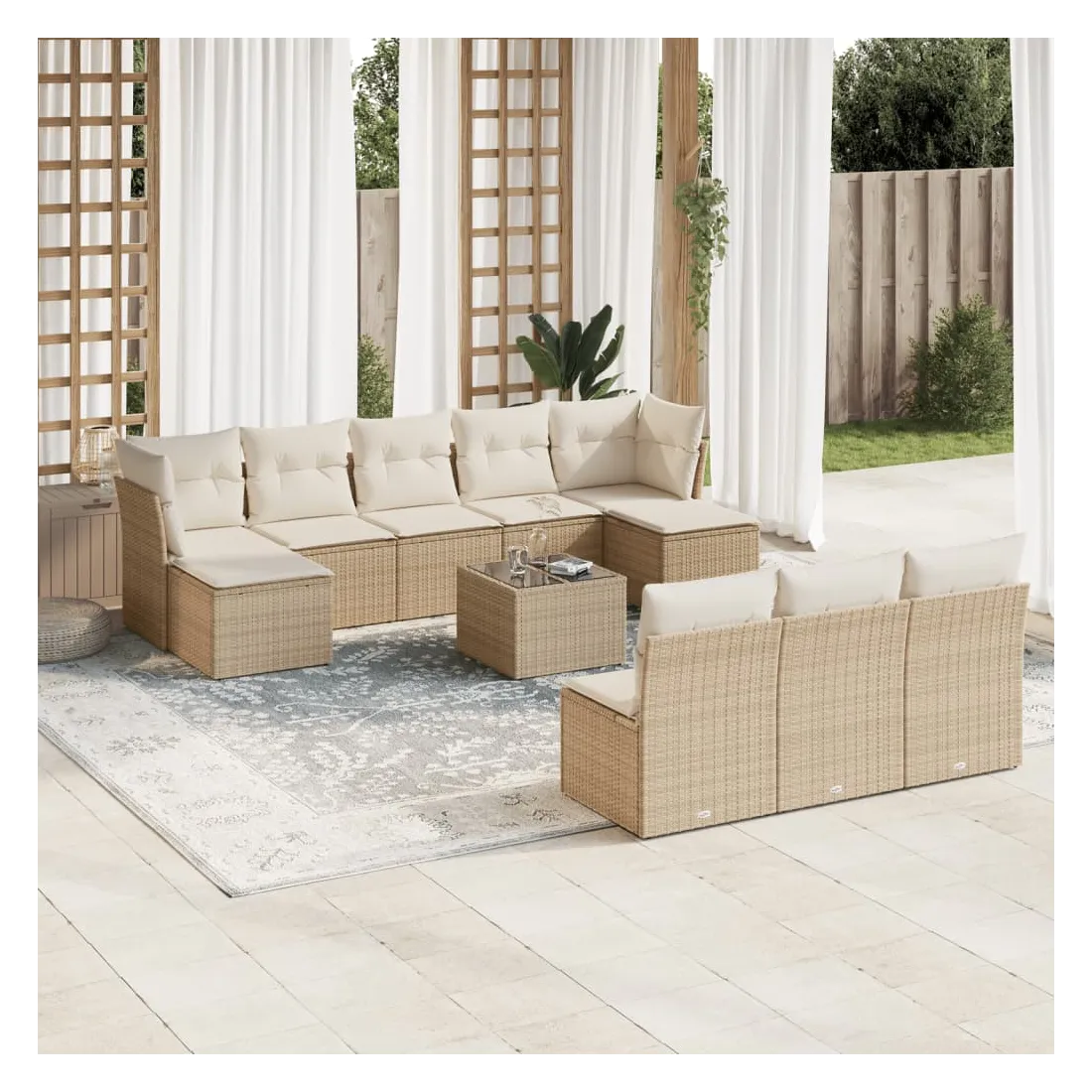 Cet ensemble de canapés de jardin est le complément parfait de votre arrière-cour, terrasse ou patio, offrant un espace confortable et accueillant pour discuter avec la famille et les amis ou simplement se détendre et profiter de l'extérieur. Matériau durable : la résine tressée, également connue sous le nom de poly rotin, est un matériau synthétique solide et nécessitant peu d'entretien qui ressemble au rotin naturel. Il est léger, facile à nettoyer et couramment utilisé pour les meubles d'extérieur en raison de sa durabilité et de ses propriétés de résistance aux intempéries.Expérience d'assise confortable : ce mobilier d'extérieur, doté de coussins épais, offre une expérience d'assise confortable.Dessus en verre : le dessus de la table d'extérieur est fabriqué en verre trempé solide et durable, ce qui le rend facile à nettoyer avec un chiffon humide et ajoute une touche d'élégance à votre espace extérieur.Housse amovible et lavable : ces coussins de siège sont dotés de housses amovibles pour un lavage et un entretien faciles.Conception modulaire : cet ensemble de meubles d'extérieur a une conception modulaire, ce qui le rend complètement flexible et facile à déplacer, afin que vous puissiez créer un agencement de meubles d'extérieur personnalisé. Bon à savoir :Pour que vos meubles d'extérieur restent beaux, nous vous recommandons de les protéger avec une housse imperméable.