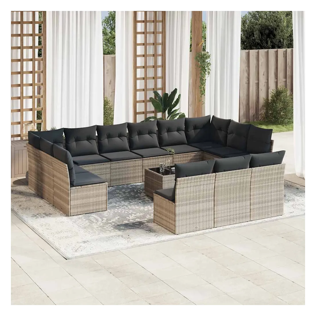 Cet ensemble de canapés de jardin est le complément parfait de votre arrière-cour, terrasse ou patio, offrant un espace confortable et accueillant pour discuter avec la famille et les amis ou simplement se détendre et profiter de l'extérieur. Matériau durable : la résine tressée, également connue sous le nom de poly rotin, est un matériau synthétique solide et nécessitant peu d'entretien qui ressemble au rotin naturel. Il est léger, facile à nettoyer et couramment utilisé pour les meubles d'extérieur en raison de sa durabilité et de ses propriétés de résistance aux intempéries.Expérience d'assise confortable : ce mobilier d'extérieur, doté de coussins épais, offre une expérience d'assise confortable.Dessus en verre : le dessus de la table d'extérieur est fabriqué en verre trempé solide et durable, ce qui le rend facile à nettoyer avec un chiffon humide et ajoute une touche d'élégance à votre espace extérieur.Housse amovible et lavable : ces coussins de siège sont dotés de housses amovibles pour un lavage et un entretien faciles.Conception modulaire : cet ensemble de meubles d'extérieur a une conception modulaire, ce qui le rend complètement flexible et facile à déplacer, afin que vous puissiez créer un agencement de meubles d'extérieur personnalisé. Bon à savoir :Pour que vos meubles d'extérieur restent beaux, nous vous recommandons de les protéger avec une housse imperméable.