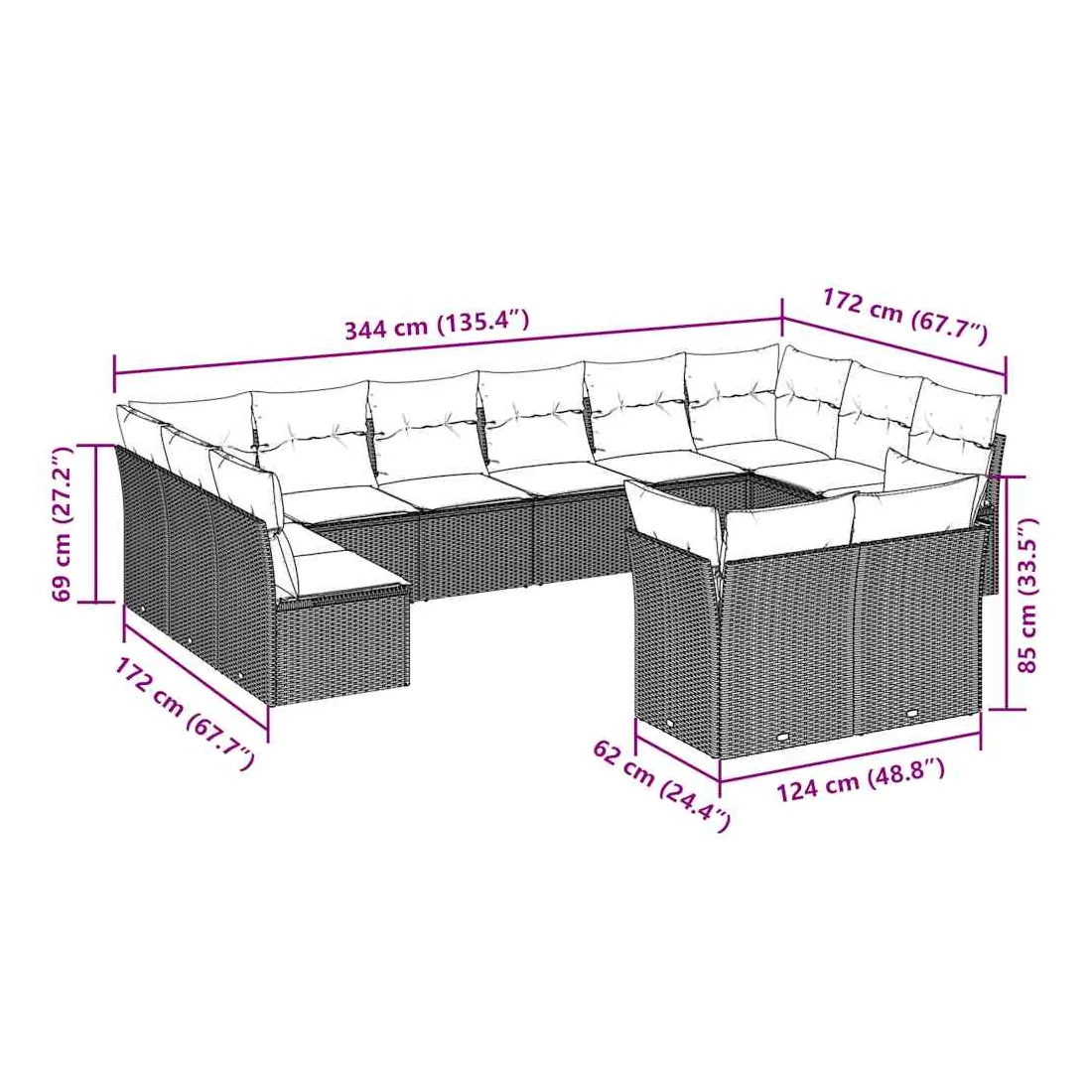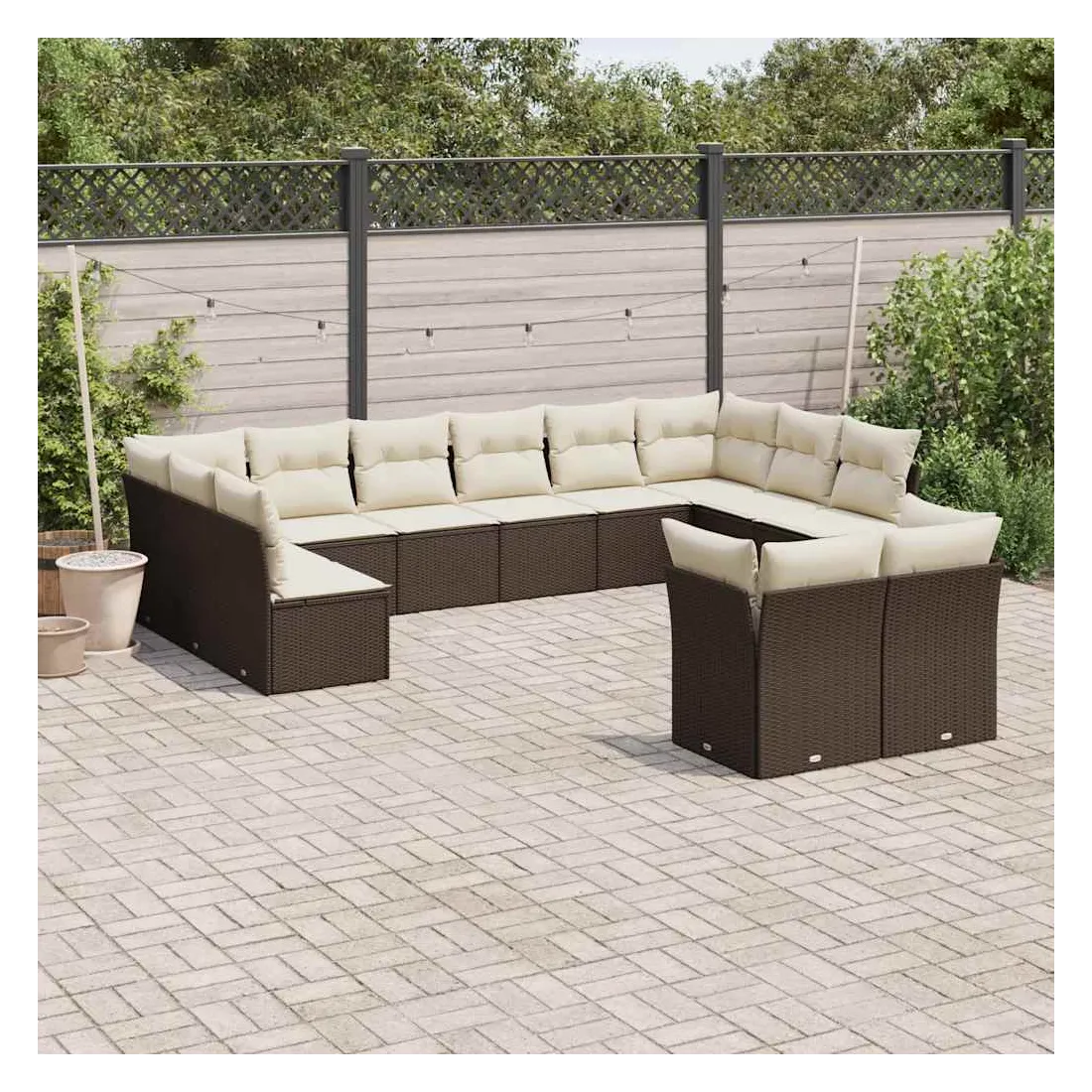 Cet ensemble de canapés de jardin est le complément parfait de votre arrière-cour, terrasse ou patio, offrant un espace confortable et accueillant pour discuter avec la famille et les amis ou simplement se détendre et profiter de l'extérieur. Matériau durable : la résine tressée, également connue sous le nom de poly rotin, est un matériau synthétique solide et nécessitant peu d'entretien qui ressemble au rotin naturel. Il est léger, facile à nettoyer et couramment utilisé pour les meubles d'extérieur en raison de sa durabilité et de ses propriétés de résistance aux intempéries.Expérience d'assise confortable : ce mobilier d'extérieur, doté de coussins épais, offre une expérience d'assise confortable.Housse amovible et lavable : ces coussins de siège sont dotés de housses amovibles pour un lavage et un entretien faciles.Conception modulaire : cet ensemble de meubles d'extérieur a une conception modulaire, ce qui le rend complètement flexible et facile à déplacer, afin que vous puissiez créer un agencement de meubles d'extérieur personnalisé. Bon à savoir :Pour que vos meubles d'extérieur restent beaux, nous vous recommandons de les protéger avec une housse imperméable.