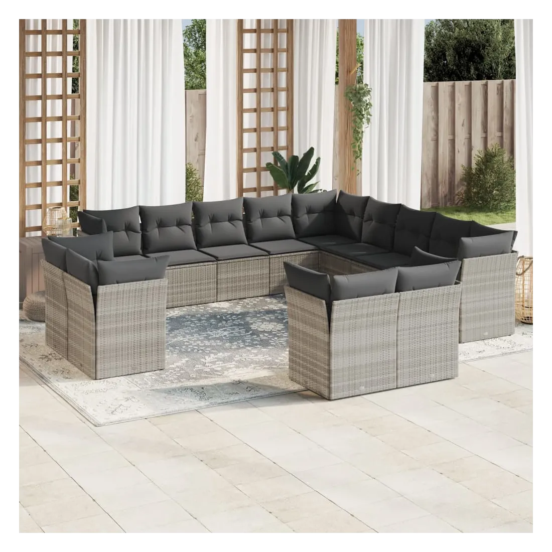 Cet ensemble de canapés de jardin est le complément parfait de votre arrière-cour, terrasse ou patio, offrant un espace confortable et accueillant pour discuter avec la famille et les amis ou simplement se détendre et profiter de l'extérieur. Matériau durable : la résine tressée, également connue sous le nom de poly rotin, est un matériau synthétique solide et nécessitant peu d'entretien qui ressemble au rotin naturel. Il est léger, facile à nettoyer et couramment utilisé pour les meubles d'extérieur en raison de sa durabilité et de ses propriétés de résistance aux intempéries.Expérience d'assise confortable : ce mobilier d'extérieur, doté de coussins épais, offre une expérience d'assise confortable.Housse amovible et lavable : ces coussins de siège sont dotés de housses amovibles pour un lavage et un entretien faciles.Conception modulaire : cet ensemble de meubles d'extérieur a une conception modulaire, ce qui le rend complètement flexible et facile à déplacer, afin que vous puissiez créer un agencement de meubles d'extérieur personnalisé. Bon à savoir :Pour que vos meubles d'extérieur restent beaux, nous vous recommandons de les protéger avec une housse imperméable.