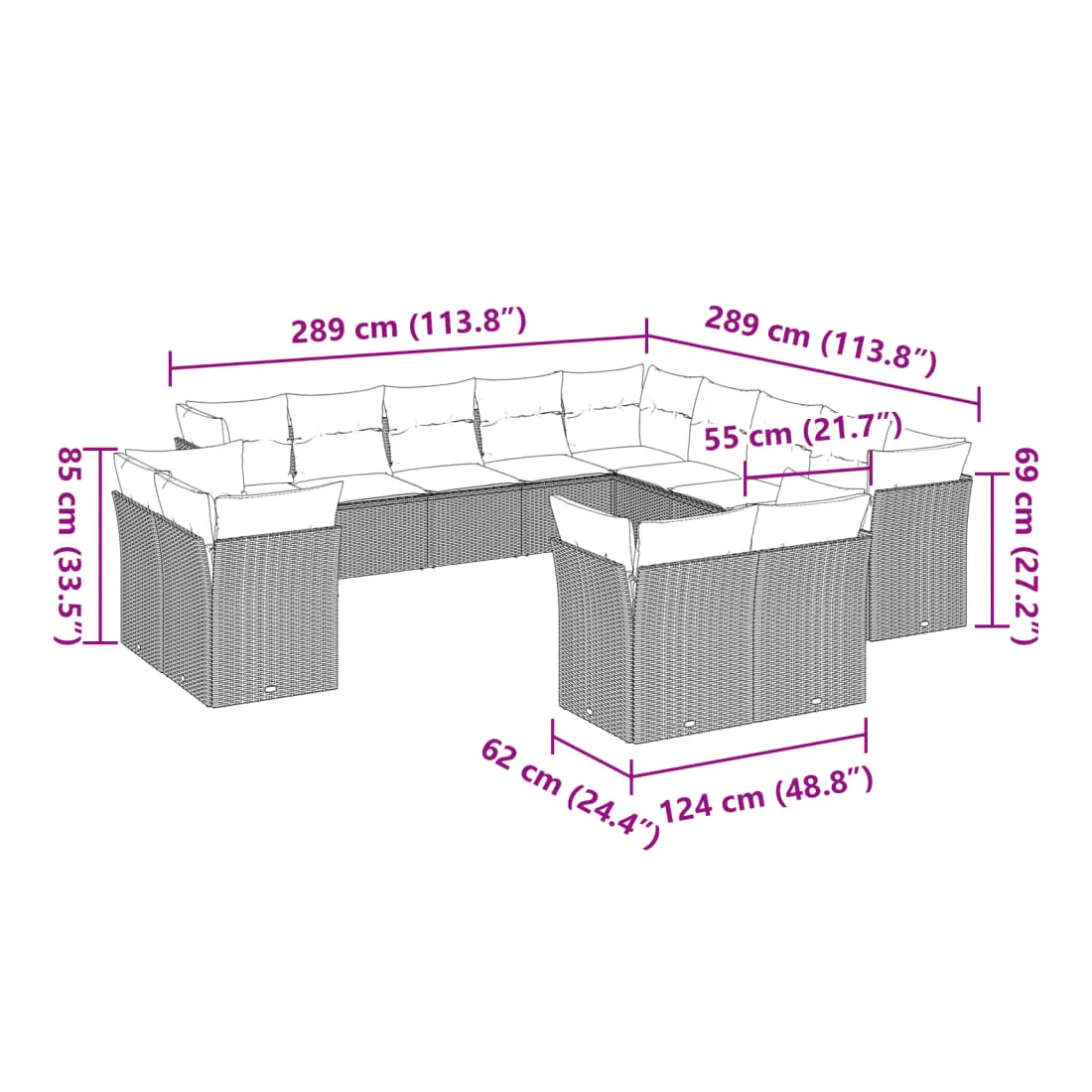 - Dimensions du coussin de dossier : 55 x 45 x 13 cm (L x l x é)