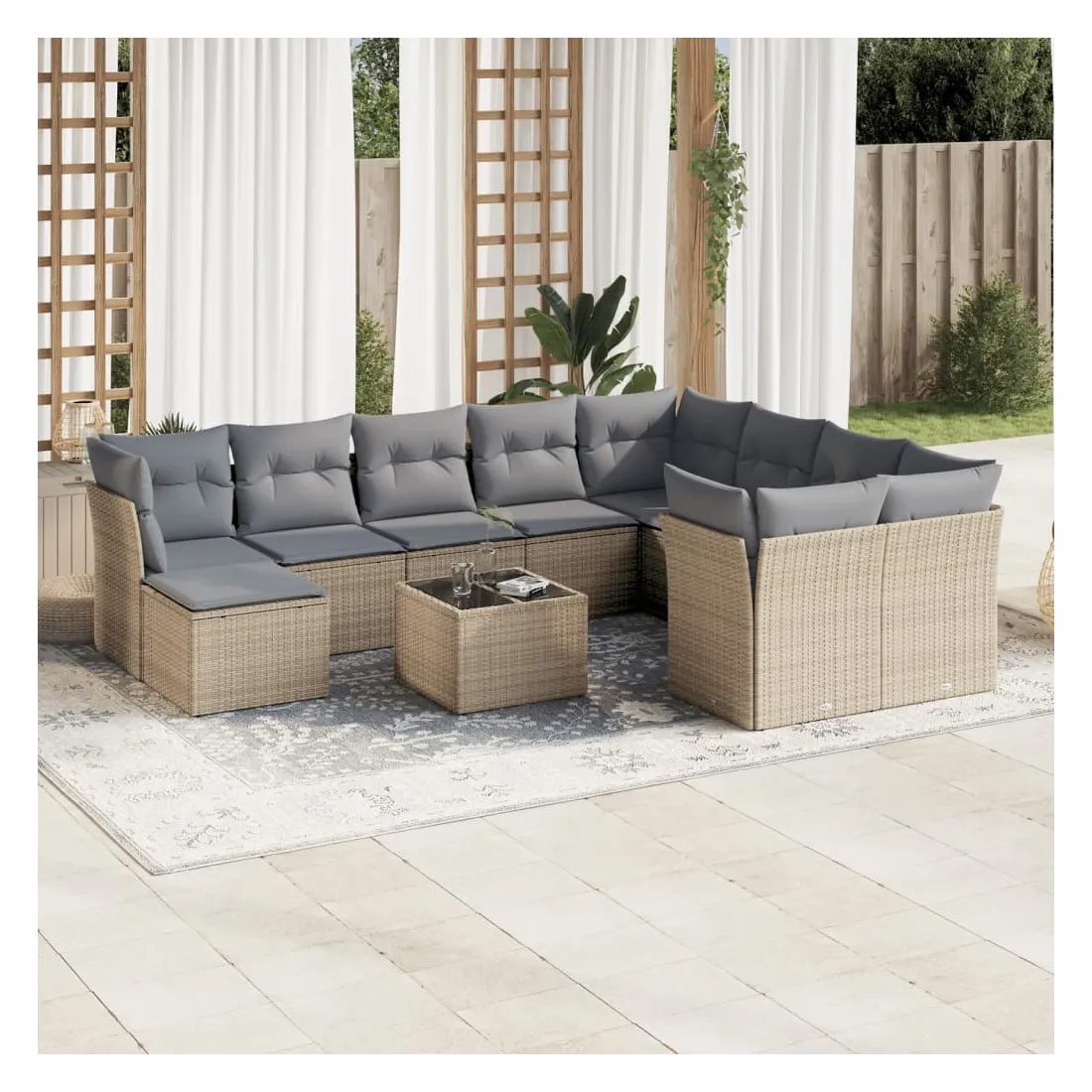 Cet ensemble de canapés de jardin est le complément parfait de votre arrière-cour, terrasse ou patio, offrant un espace confortable et accueillant pour discuter avec la famille et les amis ou simplement se détendre et profiter de l'extérieur. Matériau durable : la résine tressée, également connue sous le nom de poly rotin, est un matériau synthétique solide et nécessitant peu d'entretien qui ressemble au rotin naturel. Il est léger, facile à nettoyer et couramment utilisé pour les meubles d'extérieur en raison de sa durabilité et de ses propriétés de résistance aux intempéries.Expérience d'assise confortable : ce mobilier d'extérieur, doté de coussins épais, offre une expérience d'assise confortable.Housse amovible et lavable : ces coussins de siège sont dotés de housses amovibles pour un lavage et un entretien faciles.Dessus en verre : le dessus de la table d'extérieur est fabriqué en verre trempé solide et durable, ce qui le rend facile à nettoyer avec un chiffon humide et ajoute une touche d'élégance à votre espace extérieur.Conception modulaire : cet ensemble de meubles d'extérieur a une conception modulaire, ce qui le rend complètement flexible et facile à déplacer, afin que vous puissiez créer un agencement de meubles d'extérieur personnalisé. Bon à savoir :Pour que vos meubles d'extérieur restent beaux, nous vous recommandons de les protéger avec une housse imperméable.