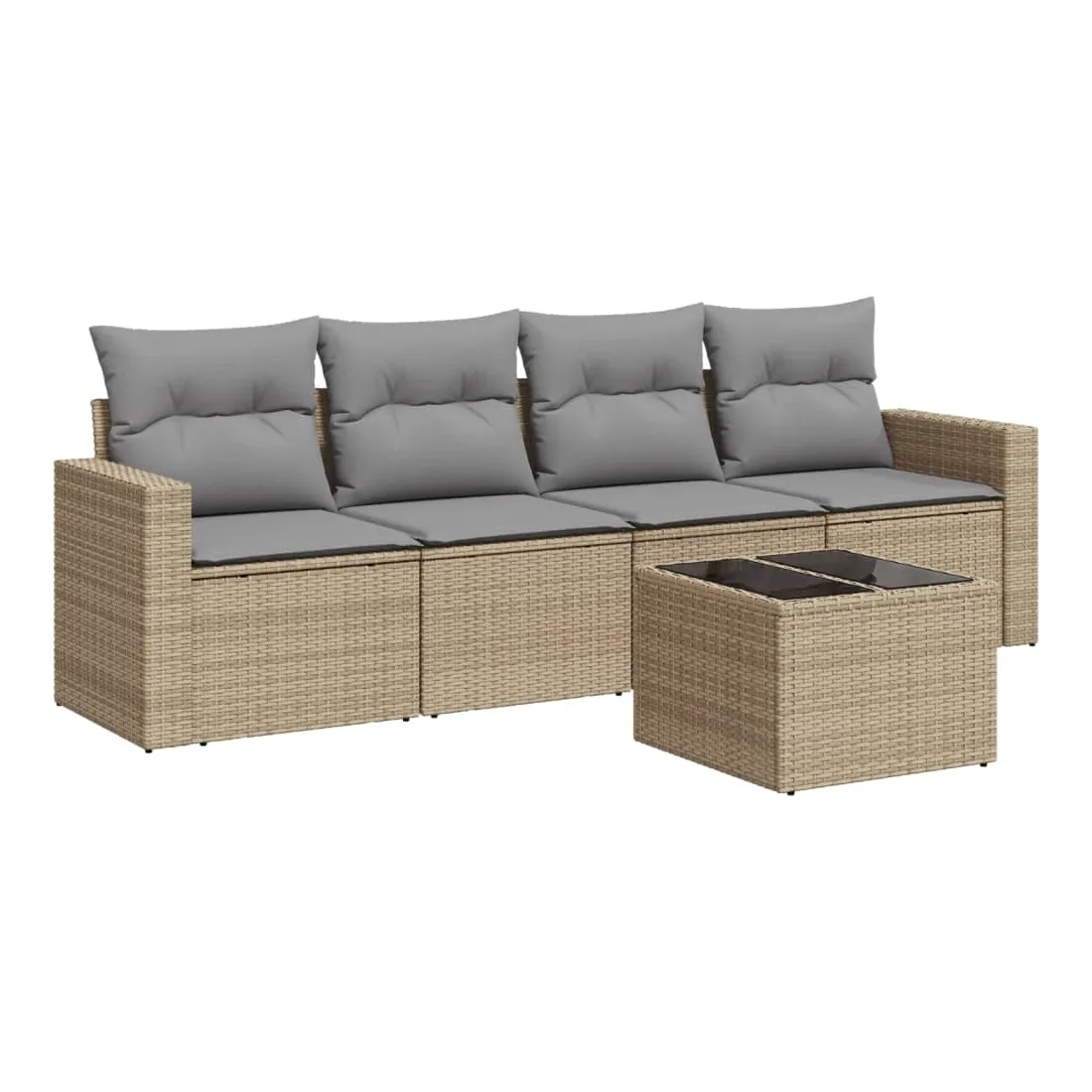 Cet ensemble de canapés de jardin est le complément parfait de votre arrière-cour, terrasse ou patio, offrant un espace confortable et accueillant pour discuter avec la famille et les amis ou simplement se détendre et profiter de l'extérieur. Matériau durable : la résine tressée, également connue sous le nom de poly rotin, est un matériau synthétique solide et nécessitant peu d'entretien qui ressemble au rotin naturel. Il est léger, facile à nettoyer et couramment utilisé pour les meubles d'extérieur en raison de sa durabilité et de ses propriétés de résistance aux intempéries.Expérience d'assise confortable : ce mobilier d'extérieur, doté de coussins épais, offre une expérience d'assise confortable. Les larges accoudoirs offrent également un endroit pratique pour garder votre téléphone portable, vos tasses ou d'autres petits objets à portée de main.Housse amovible et lavable : ces coussins de siège sont dotés de housses amovibles pour un lavage et un entretien faciles.Dessus en verre : le dessus de la table d'extérieur est fabriqué en verre trempé solide et durable, ce qui le rend facile à nettoyer avec un chiffon humide et ajoute une touche d'élégance à votre espace extérieur.Conception modulaire : cet ensemble de meubles d'extérieur a une conception modulaire, ce qui le rend complètement flexible et facile à déplacer, afin que vous puissiez créer un agencement de meubles d'extérieur personnalisé. Bon à savoir :Pour que vos meubles d'extérieur restent beaux, nous vous recommandons de les protéger avec une housse imperméable.