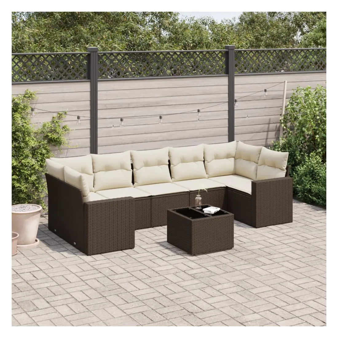 Cet ensemble de canapés de jardin est le complément parfait de votre arrière-cour, terrasse ou patio, offrant un espace confortable et accueillant pour discuter avec la famille et les amis ou simplement se détendre et profiter de l'extérieur. Matériau durable : la résine tressée, également connue sous le nom de poly rotin, est un matériau synthétique solide et nécessitant peu d'entretien qui ressemble au rotin naturel. Il est léger, facile à nettoyer et couramment utilisé pour les meubles d'extérieur en raison de sa durabilité et de ses propriétés de résistance aux intempéries.Expérience d'assise confortable : ce mobilier d'extérieur, doté de coussins épais, offre une expérience d'assise confortable. Les larges accoudoirs offrent également un endroit pratique pour garder votre téléphone portable, vos tasses ou d'autres petits objets à portée de main.Housse amovible et lavable : ces coussins de siège sont dotés de housses amovibles pour un lavage et un entretien faciles.Dessus en verre : le dessus de la table d'extérieur est fabriqué en verre trempé solide et durable, ce qui le rend facile à nettoyer avec un chiffon humide et ajoute une touche d'élégance à votre espace extérieur.Conception modulaire : cet ensemble de meubles d'extérieur a une conception modulaire, ce qui le rend complètement flexible et facile à déplacer, afin que vous puissiez créer un agencement de meubles d'extérieur personnalisé. Bon à savoir :Pour que vos meubles d'extérieur restent beaux, nous vous recommandons de les protéger avec une housse imperméable.