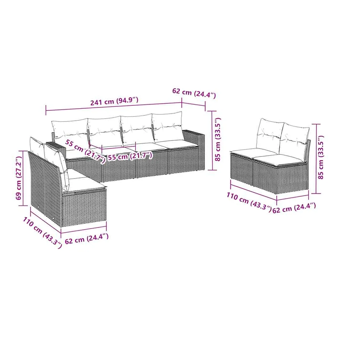 Cet ensemble de canapés de jardin est le complément parfait de votre arrière-cour, terrasse ou patio, offrant un espace confortable et accueillant pour discuter avec la famille et les amis ou simplement se détendre et profiter de l'extérieur. Matériau durable : la résine tressée, également connue sous le nom de poly rotin, est un matériau synthétique solide et nécessitant peu d'entretien qui ressemble au rotin naturel. Il est léger, facile à nettoyer et couramment utilisé pour les meubles d'extérieur en raison de sa durabilité et de ses propriétés de résistance aux intempéries.Expérience d'assise confortable : ce mobilier d'extérieur, doté de coussins épais, offre une expérience d'assise confortable. Les larges accoudoirs offrent également un endroit pratique pour garder votre téléphone portable, vos tasses ou d'autres petits objets à portée de main.Housse amovible et lavable : ces coussins de siège sont dotés de housses amovibles pour un lavage et un entretien faciles.Conception modulaire : cet ensemble de meubles d'extérieur a une conception modulaire, ce qui le rend complètement flexible et facile à déplacer, afin que vous puissiez créer un agencement de meubles d'extérieur personnalisé. Bon à savoir :Pour que vos meubles d'extérieur restent beaux, nous vous recommandons de les protéger avec une housse imperméable.