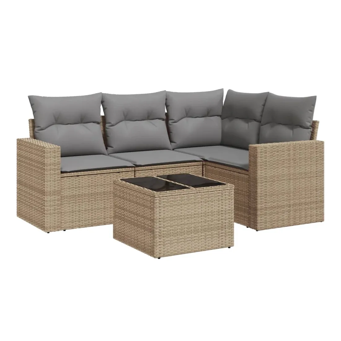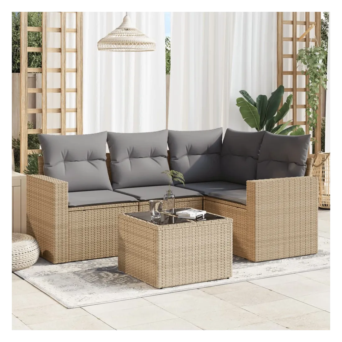 Cet ensemble de canapés de jardin est le complément parfait de votre arrière-cour, terrasse ou patio, offrant un espace confortable et accueillant pour discuter avec la famille et les amis ou simplement se détendre et profiter de l'extérieur. Matériau durable : la résine tressée, également connue sous le nom de poly rotin, est un matériau synthétique solide et nécessitant peu d'entretien qui ressemble au rotin naturel. Il est léger, facile à nettoyer et couramment utilisé pour les meubles d'extérieur en raison de sa durabilité et de ses propriétés de résistance aux intempéries.Expérience d'assise confortable : ce mobilier d'extérieur, doté de coussins épais, offre une expérience d'assise confortable. Les larges accoudoirs offrent également un endroit pratique pour garder votre téléphone portable, vos tasses ou d'autres petits objets à portée de main.Housse amovible et lavable : ces coussins de siège sont dotés de housses amovibles pour un lavage et un entretien faciles.Dessus en verre : le dessus de la table d'extérieur est fabriqué en verre trempé solide et durable, ce qui le rend facile à nettoyer avec un chiffon humide et ajoute une touche d'élégance à votre espace extérieur.Conception modulaire : cet ensemble de meubles d'extérieur a une conception modulaire, ce qui le rend complètement flexible et facile à déplacer, afin que vous puissiez créer un agencement de meubles d'extérieur personnalisé. Bon à savoir :Pour que vos meubles d'extérieur restent beaux, nous vous recommandons de les protéger avec une housse imperméable.