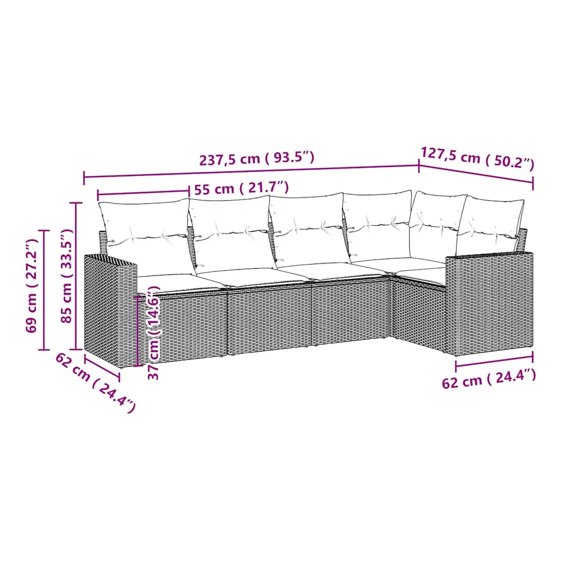 - Dimensions du coussin de dossier : 55 x 45 x 13 cm (L x l x é)