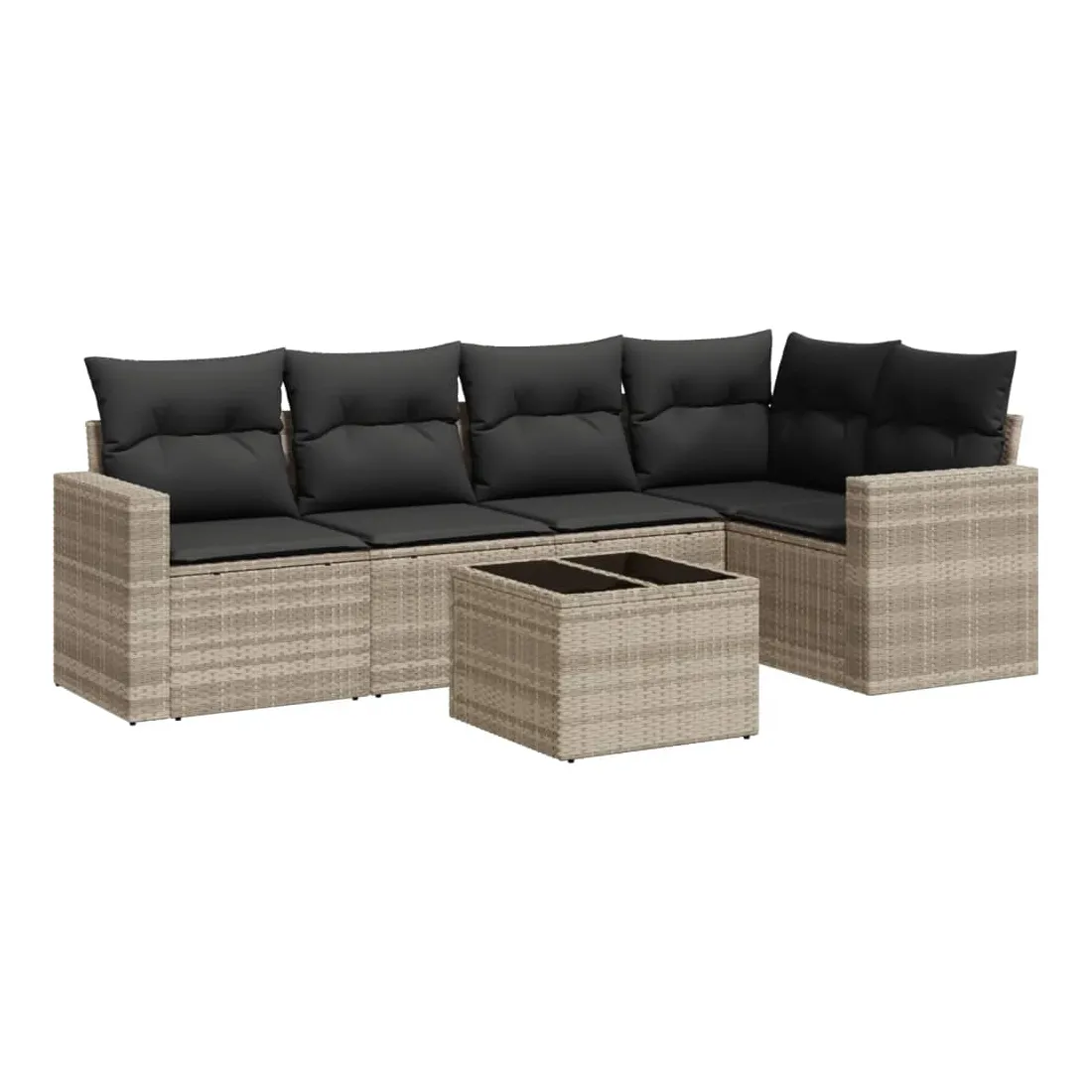 Salon de jardin 6 pcs avec coussins gris clair résine tressée