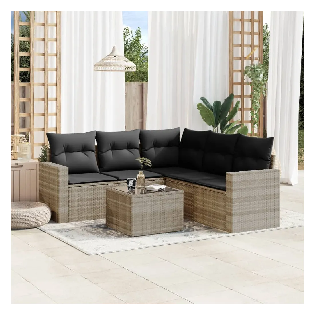 Cet ensemble de canapés de jardin est le complément parfait de votre arrière-cour, terrasse ou patio, offrant un espace confortable et accueillant pour discuter avec la famille et les amis ou simplement se détendre et profiter de l'extérieur. Matériau durable : la résine tressée, également connue sous le nom de poly rotin, est un matériau synthétique solide et nécessitant peu d'entretien qui ressemble au rotin naturel. Il est léger, facile à nettoyer et couramment utilisé pour les meubles d'extérieur en raison de sa durabilité et de ses propriétés de résistance aux intempéries.Expérience d'assise confortable : ce mobilier d'extérieur, doté de coussins épais, offre une expérience d'assise confortable. Les larges accoudoirs offrent également un endroit pratique pour garder votre téléphone portable, vos tasses ou d'autres petits objets à portée de main.Housse amovible et lavable : ces coussins de siège sont dotés de housses amovibles pour un lavage et un entretien faciles.Dessus en verre : le dessus de la table d'extérieur est fabriqué en verre trempé solide et durable, ce qui le rend facile à nettoyer avec un chiffon humide et ajoute une touche d'élégance à votre espace extérieur.Conception modulaire : cet ensemble de meubles d'extérieur a une conception modulaire, ce qui le rend complètement flexible et facile à déplacer, afin que vous puissiez créer un agencement de meubles d'extérieur personnalisé. Bon à savoir :Pour que vos meubles d'extérieur restent beaux, nous vous recommandons de les protéger avec une housse imperméable.