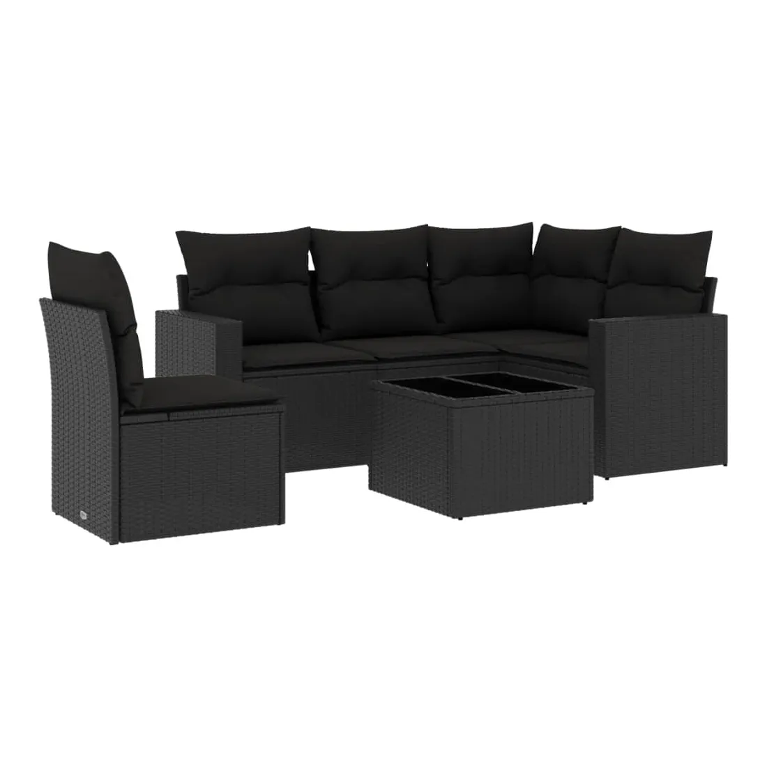 Salon de jardin 6 pcs avec coussins noir résine tressée