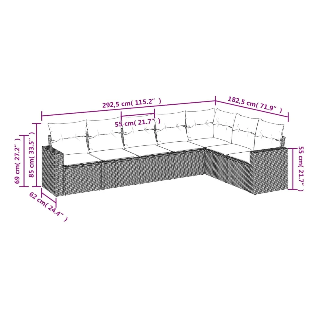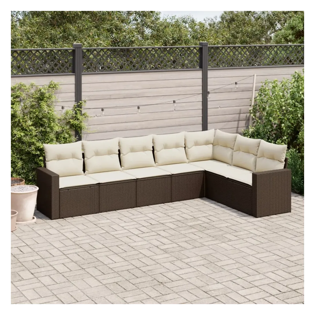 Cet ensemble de canapés de jardin est le complément parfait de votre arrière-cour, terrasse ou patio, offrant un espace confortable et accueillant pour discuter avec la famille et les amis ou simplement se détendre et profiter de l'extérieur. Matériau durable : la résine tressée, également connue sous le nom de poly rotin, est un matériau synthétique solide et nécessitant peu d'entretien qui ressemble au rotin naturel. Il est léger, facile à nettoyer et couramment utilisé pour les meubles d'extérieur en raison de sa durabilité et de ses propriétés de résistance aux intempéries.Expérience d'assise confortable : ce mobilier d'extérieur, doté de coussins épais, offre une expérience d'assise confortable. Les larges accoudoirs offrent également un endroit pratique pour garder votre téléphone portable, vos tasses ou d'autres petits objets à portée de main.Housse amovible et lavable : ces coussins de siège sont dotés de housses amovibles pour un lavage et un entretien faciles.Conception modulaire : cet ensemble de meubles d'extérieur a une conception modulaire, ce qui le rend complètement flexible et facile à déplacer, afin que vous puissiez créer un agencement de meubles d'extérieur personnalisé. Bon à savoir :Pour que vos meubles d'extérieur restent beaux, nous vous recommandons de les protéger avec une housse imperméable.