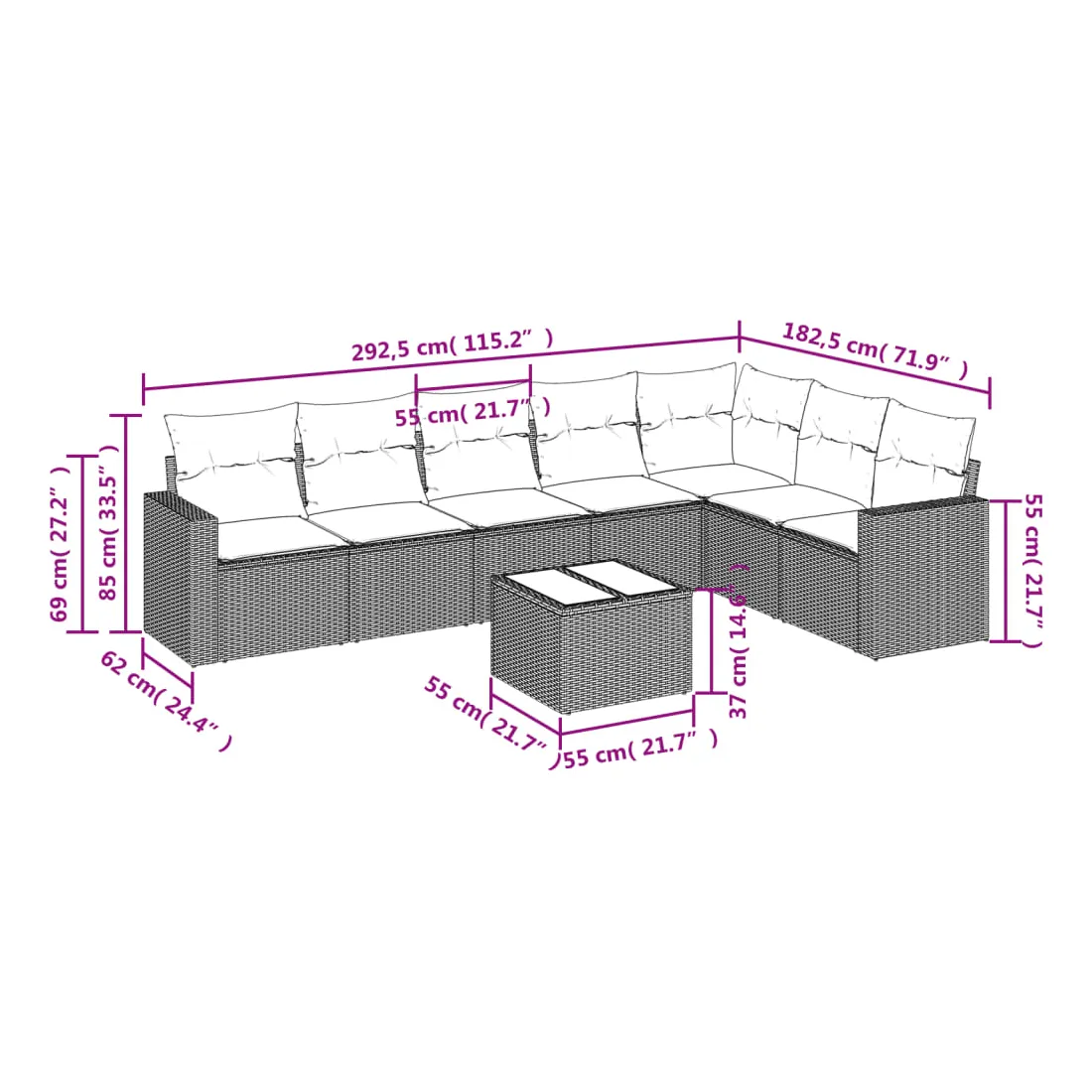 - Dimensions du coussin de siège : 55 x 55 x 3 cm (l x P x é)