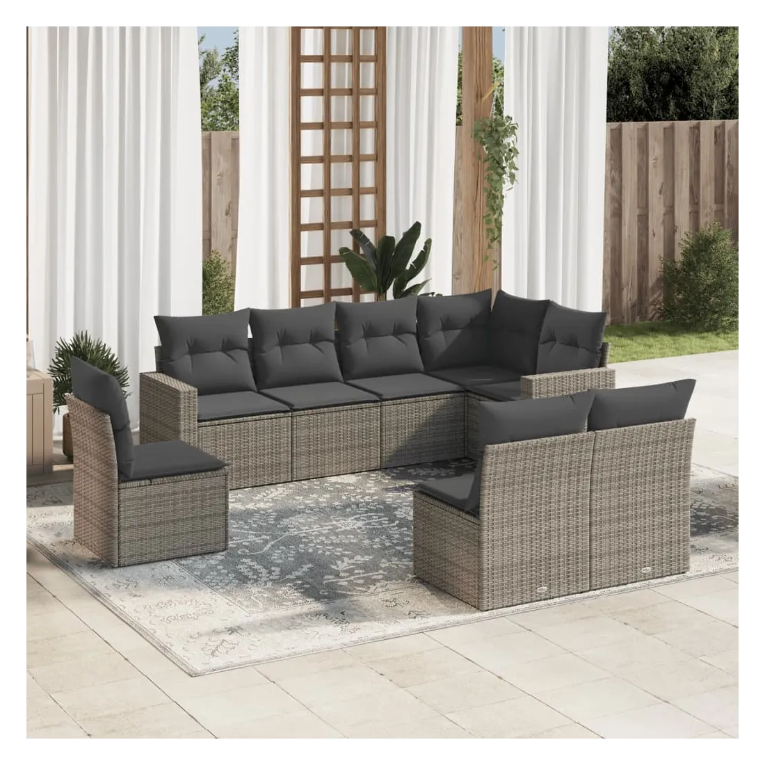 Cet ensemble de canapés de jardin est le complément parfait de votre arrière-cour, terrasse ou patio, offrant un espace confortable et accueillant pour discuter avec la famille et les amis ou simplement se détendre et profiter de l'extérieur. Matériau durable : la résine tressée, également connue sous le nom de poly rotin, est un matériau synthétique solide et nécessitant peu d'entretien qui ressemble au rotin naturel. Il est léger, facile à nettoyer et couramment utilisé pour les meubles d'extérieur en raison de sa durabilité et de ses propriétés de résistance aux intempéries.Expérience d'assise confortable : ce mobilier d'extérieur, doté de coussins épais, offre une expérience d'assise confortable. Les larges accoudoirs offrent également un endroit pratique pour garder votre téléphone portable, vos tasses ou d'autres petits objets à portée de main.Housse amovible et lavable : ces coussins de siège sont dotés de housses amovibles pour un lavage et un entretien faciles.Conception modulaire : cet ensemble de meubles d'extérieur a une conception modulaire, ce qui le rend complètement flexible et facile à déplacer, afin que vous puissiez créer un agencement de meubles d'extérieur personnalisé. Bon à savoir :Pour que vos meubles d'extérieur restent beaux, nous vous recommandons de les protéger avec une housse imperméable.
