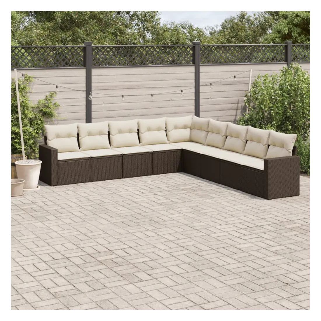 Cet ensemble de canapés de jardin est le complément parfait de votre arrière-cour, terrasse ou patio, offrant un espace confortable et accueillant pour discuter avec la famille et les amis ou simplement se détendre et profiter de l'extérieur. Matériau durable : la résine tressée, également connue sous le nom de poly rotin, est un matériau synthétique solide et nécessitant peu d'entretien qui ressemble au rotin naturel. Il est léger, facile à nettoyer et couramment utilisé pour les meubles d'extérieur en raison de sa durabilité et de ses propriétés de résistance aux intempéries.Expérience d'assise confortable : ce mobilier d'extérieur, doté de coussins épais, offre une expérience d'assise confortable. Les larges accoudoirs offrent également un endroit pratique pour garder votre téléphone portable, vos tasses ou d'autres petits objets à portée de main.Housse amovible et lavable : ces coussins de siège sont dotés de housses amovibles pour un lavage et un entretien faciles.Conception modulaire : cet ensemble de meubles d'extérieur a une conception modulaire, ce qui le rend complètement flexible et facile à déplacer, afin que vous puissiez créer un agencement de meubles d'extérieur personnalisé. Bon à savoir :Pour que vos meubles d'extérieur restent beaux, nous vous recommandons de les protéger avec une housse imperméable.