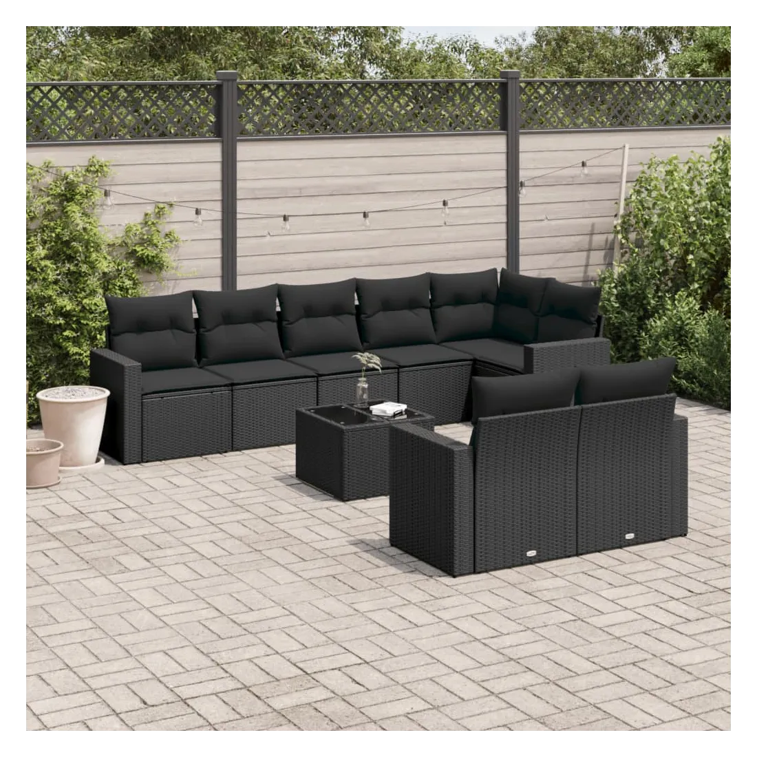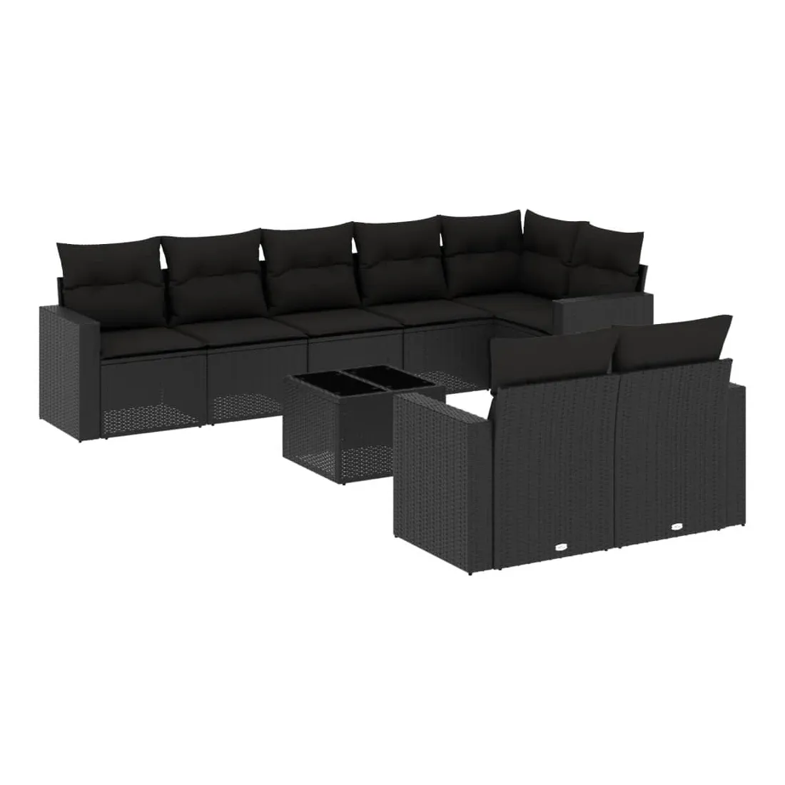 Salon de jardin 9 pcs avec coussins noir résine tressée