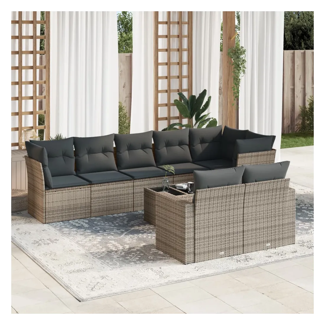 Cet ensemble de canapés de jardin est le complément parfait de votre arrière-cour, terrasse ou patio, offrant un espace confortable et accueillant pour discuter avec la famille et les amis ou simplement se détendre et profiter de l'extérieur. Matériau durable : la résine tressée, également connue sous le nom de poly rotin, est un matériau synthétique solide et nécessitant peu d'entretien qui ressemble au rotin naturel. Il est léger, facile à nettoyer et couramment utilisé pour les meubles d'extérieur en raison de sa durabilité et de ses propriétés de résistance aux intempéries.Expérience d'assise confortable : ce mobilier d'extérieur, doté de coussins épais, offre une expérience d'assise confortable. Les larges accoudoirs offrent également un endroit pratique pour garder votre téléphone portable, vos tasses ou d'autres petits objets à portée de main.Housse amovible et lavable : ces coussins de siège sont dotés de housses amovibles pour un lavage et un entretien faciles.Dessus en verre : le dessus de la table d'extérieur est fabriqué en verre trempé solide et durable, ce qui le rend facile à nettoyer avec un chiffon humide et ajoute une touche d'élégance à votre espace extérieur.Conception modulaire : cet ensemble de meubles d'extérieur a une conception modulaire, ce qui le rend complètement flexible et facile à déplacer, afin que vous puissiez créer un agencement de meubles d'extérieur personnalisé. Bon à savoir :Pour que vos meubles d'extérieur restent beaux, nous vous recommandons de les protéger avec une housse imperméable.