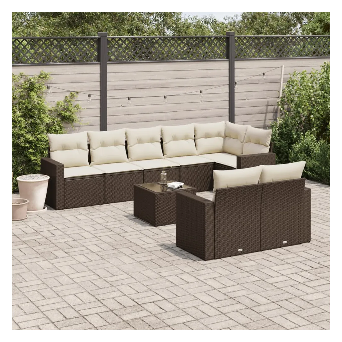 Salon de jardin avec coussins 9 pcs marron résine tressée