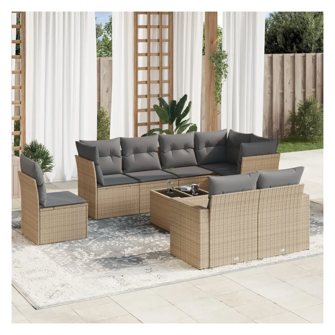 Cet ensemble de canapés de jardin est le complément parfait de votre arrière-cour, terrasse ou patio, offrant un espace confortable et accueillant pour discuter avec la famille et les amis ou simplement se détendre et profiter de l'extérieur. Matériau durable : la résine tressée, également connue sous le nom de poly rotin, est un matériau synthétique solide et nécessitant peu d'entretien qui ressemble au rotin naturel. Il est léger, facile à nettoyer et couramment utilisé pour les meubles d'extérieur en raison de sa durabilité et de ses propriétés de résistance aux intempéries.Expérience d'assise confortable : ce mobilier d'extérieur, doté de coussins épais, offre une expérience d'assise confortable. Les larges accoudoirs offrent également un endroit pratique pour garder votre téléphone portable, vos tasses ou d'autres petits objets à portée de main.Housse amovible et lavable : ces coussins de siège sont dotés de housses amovibles pour un lavage et un entretien faciles.Dessus en verre : le dessus de la table d'extérieur est fabriqué en verre trempé solide et durable, ce qui le rend facile à nettoyer avec un chiffon humide et ajoute une touche d'élégance à votre espace extérieur.Conception modulaire : cet ensemble de meubles d'extérieur a une conception modulaire, ce qui le rend complètement flexible et facile à déplacer, afin que vous puissiez créer un agencement de meubles d'extérieur personnalisé. Bon à savoir :Pour que vos meubles d'extérieur restent beaux, nous vous recommandons de les protéger avec une housse imperméable.