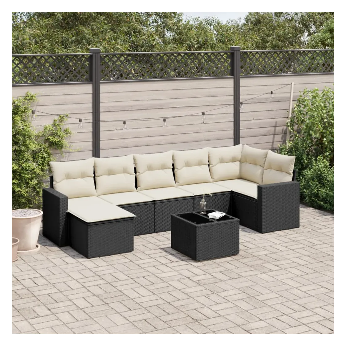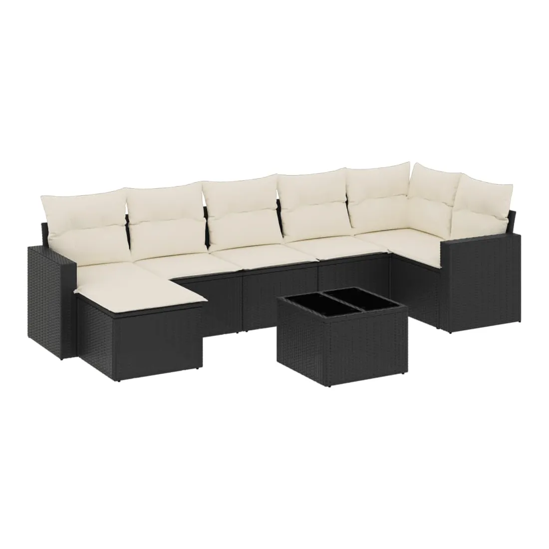 Salon de jardin 8 pcs avec coussins noir résine tressée