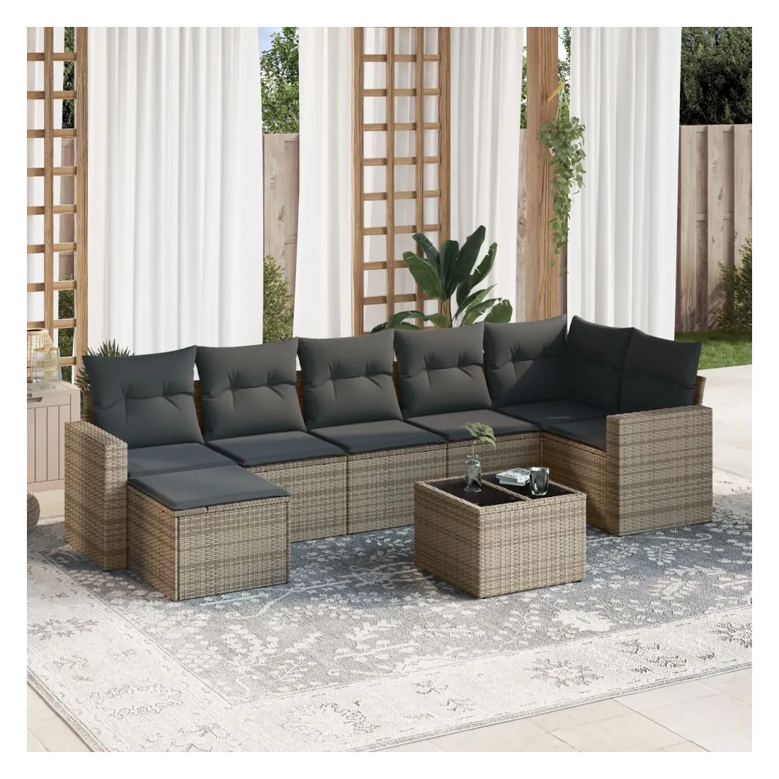 Cet ensemble de canapés de jardin est le complément parfait de votre arrière-cour, terrasse ou patio, offrant un espace confortable et accueillant pour discuter avec la famille et les amis ou simplement se détendre et profiter de l'extérieur. Matériau durable : la résine tressée, également connue sous le nom de poly rotin, est un matériau synthétique solide et nécessitant peu d'entretien qui ressemble au rotin naturel. Il est léger, facile à nettoyer et couramment utilisé pour les meubles d'extérieur en raison de sa durabilité et de ses propriétés de résistance aux intempéries.Expérience d'assise confortable : ce mobilier d'extérieur, doté de coussins épais, offre une expérience d'assise confortable. Les larges accoudoirs offrent également un endroit pratique pour garder votre téléphone portable, vos tasses ou d'autres petits objets à portée de main.Housse amovible et lavable : ces coussins de siège sont dotés de housses amovibles pour un lavage et un entretien faciles.Dessus en verre : le dessus de la table d'extérieur est fabriqué en verre trempé solide et durable, ce qui le rend facile à nettoyer avec un chiffon humide et ajoute une touche d'élégance à votre espace extérieur.Conception modulaire : cet ensemble de meubles d'extérieur a une conception modulaire, ce qui le rend complètement flexible et facile à déplacer, afin que vous puissiez créer un agencement de meubles d'extérieur personnalisé. Bon à savoir :Pour que vos meubles d'extérieur restent beaux, nous vous recommandons de les protéger avec une housse imperméable.