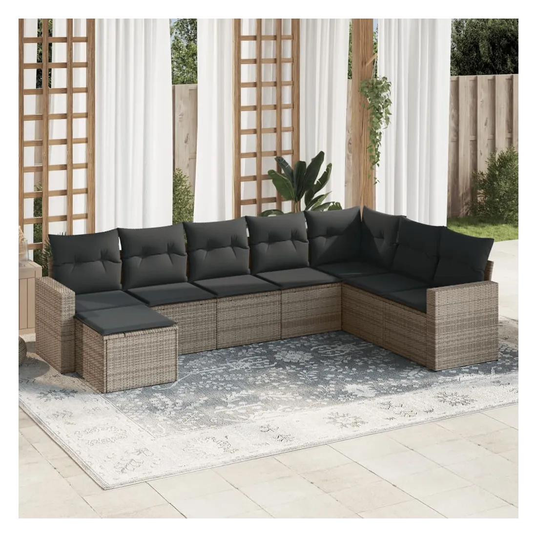 Cet ensemble de canapés de jardin est le complément parfait de votre arrière-cour, terrasse ou patio, offrant un espace confortable et accueillant pour discuter avec la famille et les amis ou simplement se détendre et profiter de l'extérieur. Matériau durable : la résine tressée, également connue sous le nom de poly rotin, est un matériau synthétique solide et nécessitant peu d'entretien qui ressemble au rotin naturel. Il est léger, facile à nettoyer et couramment utilisé pour les meubles d'extérieur en raison de sa durabilité et de ses propriétés de résistance aux intempéries.Expérience d'assise confortable : ce mobilier d'extérieur, doté de coussins épais, offre une expérience d'assise confortable. Les larges accoudoirs offrent également un endroit pratique pour garder votre téléphone portable, vos tasses ou d'autres petits objets à portée de main.Housse amovible et lavable : ces coussins de siège sont dotés de housses amovibles pour un lavage et un entretien faciles.Conception modulaire : cet ensemble de meubles d'extérieur a une conception modulaire, ce qui le rend complètement flexible et facile à déplacer, afin que vous puissiez créer un agencement de meubles d'extérieur personnalisé. Bon à savoir :Pour que vos meubles d'extérieur restent beaux, nous vous recommandons de les protéger avec une housse imperméable.