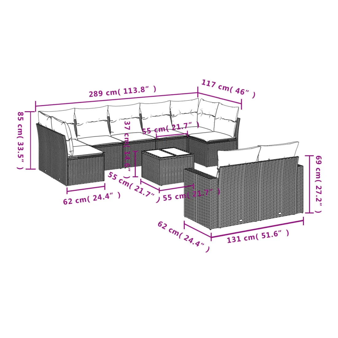 - 9 x coussin d'assise avec housse amovible et lavable