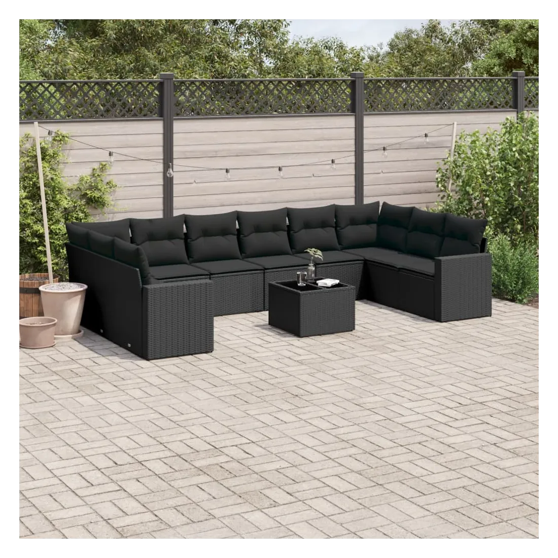 Salon de jardin 11 pcs avec coussins noir résine tressée