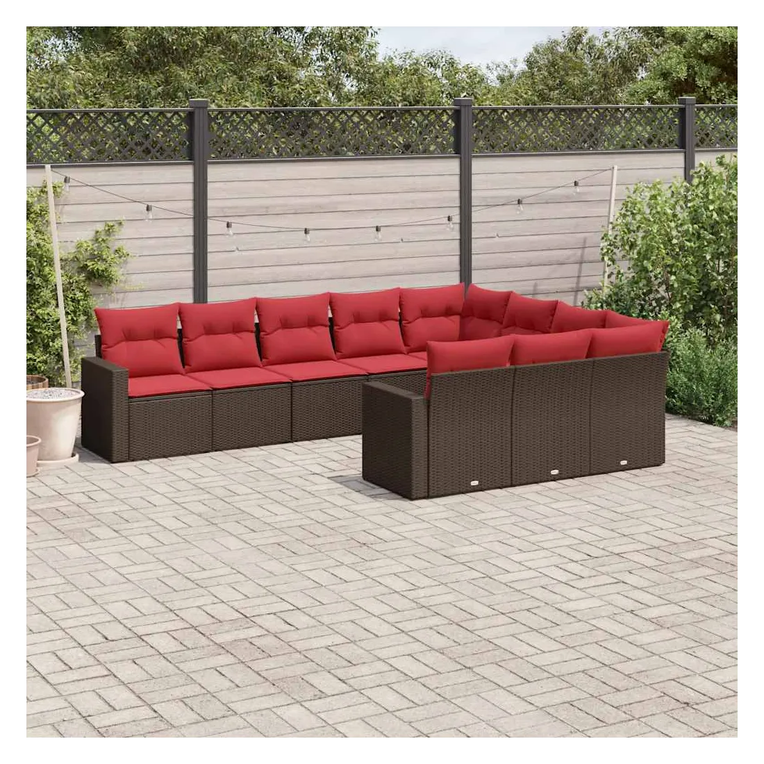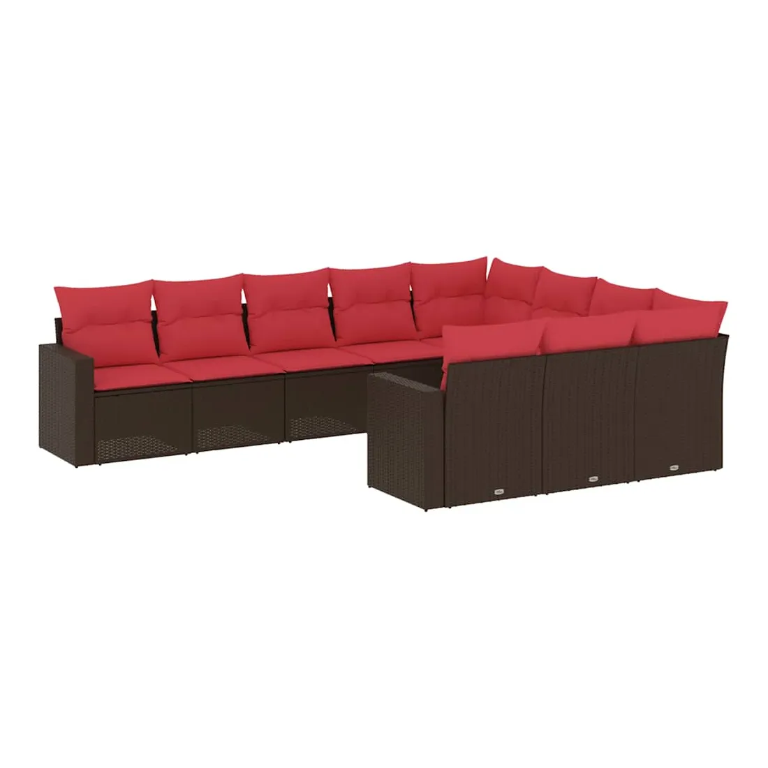 Salon de jardin 10 pcs avec coussins marron résine tressée