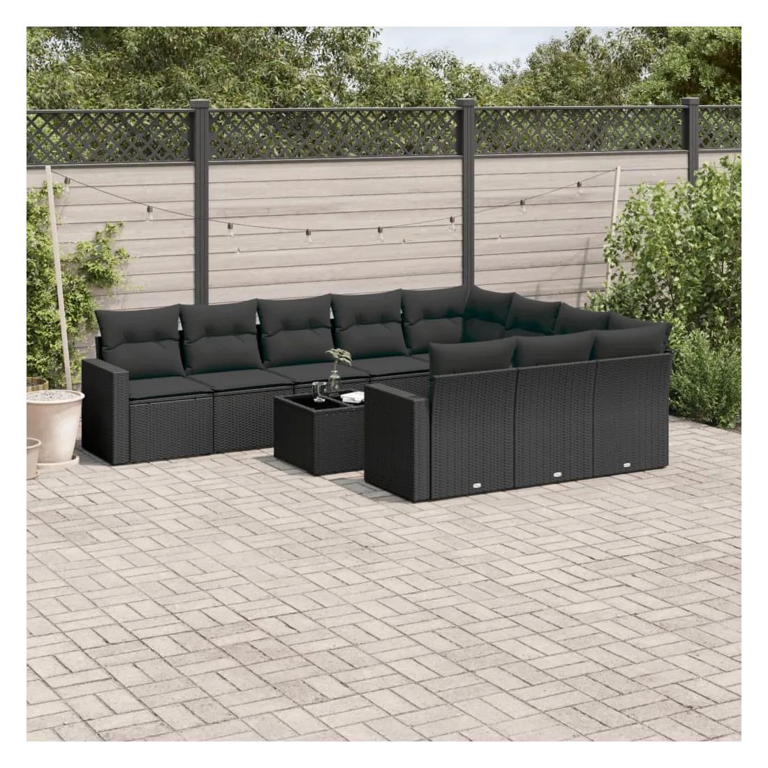 Salon de jardin 11 pcs avec coussins noir résine tressée