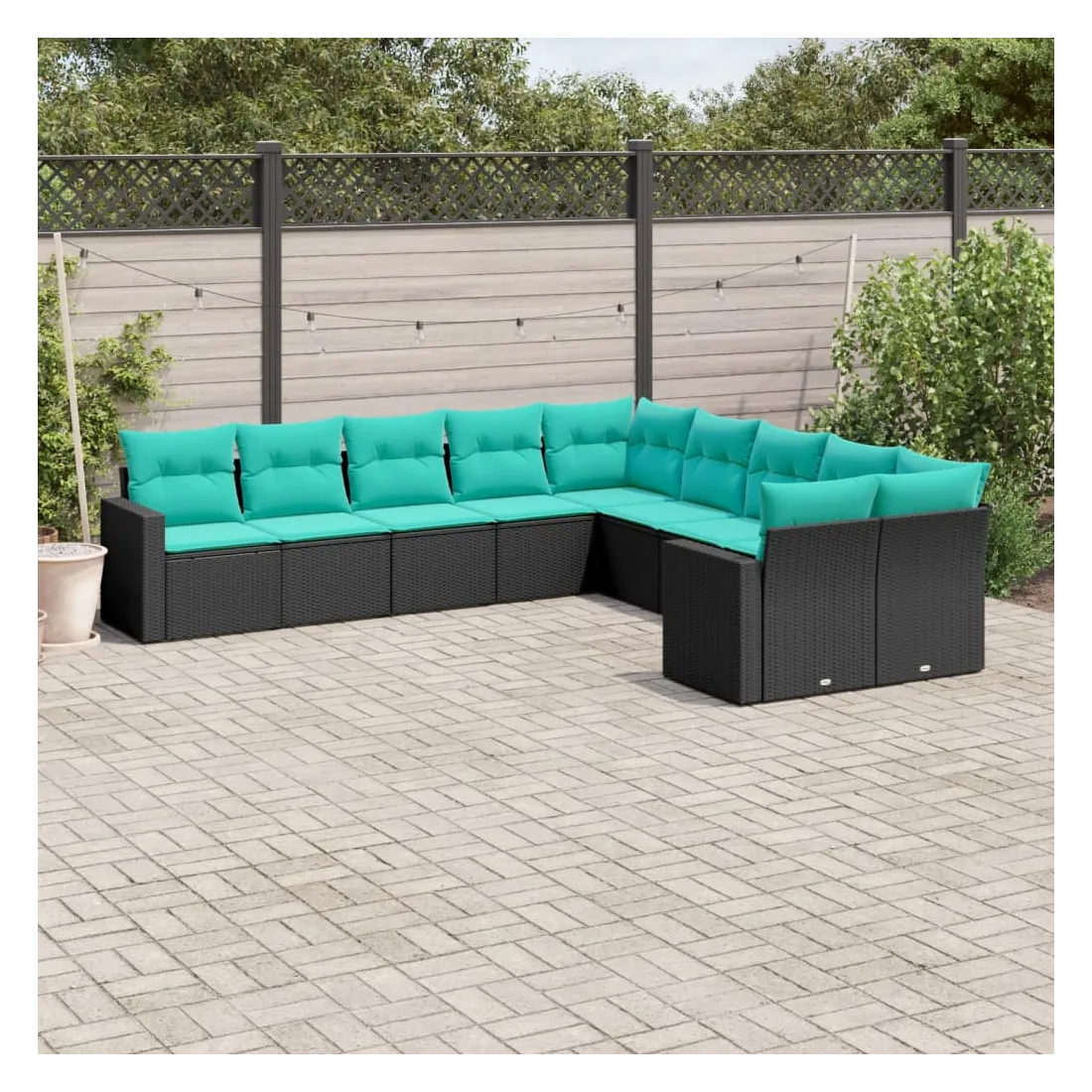 Salon de jardin 10 pcs avec coussins noir résine tressée