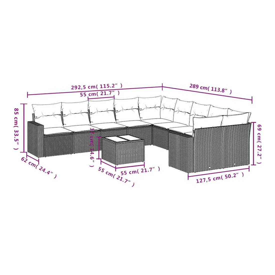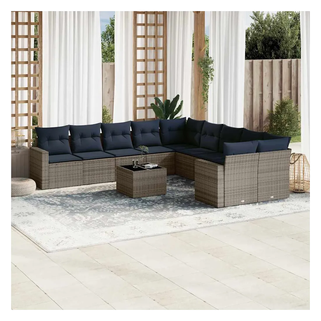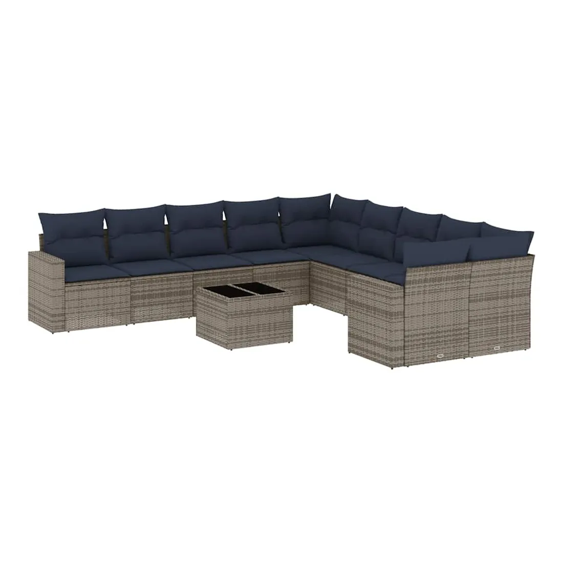 Salon de jardin 11 pcs avec coussins gris résine tressée