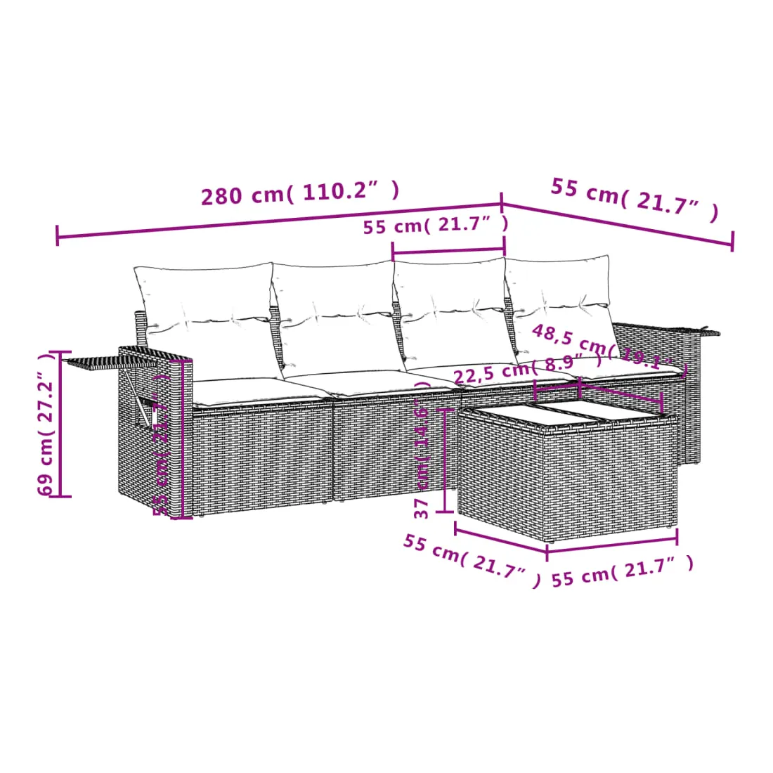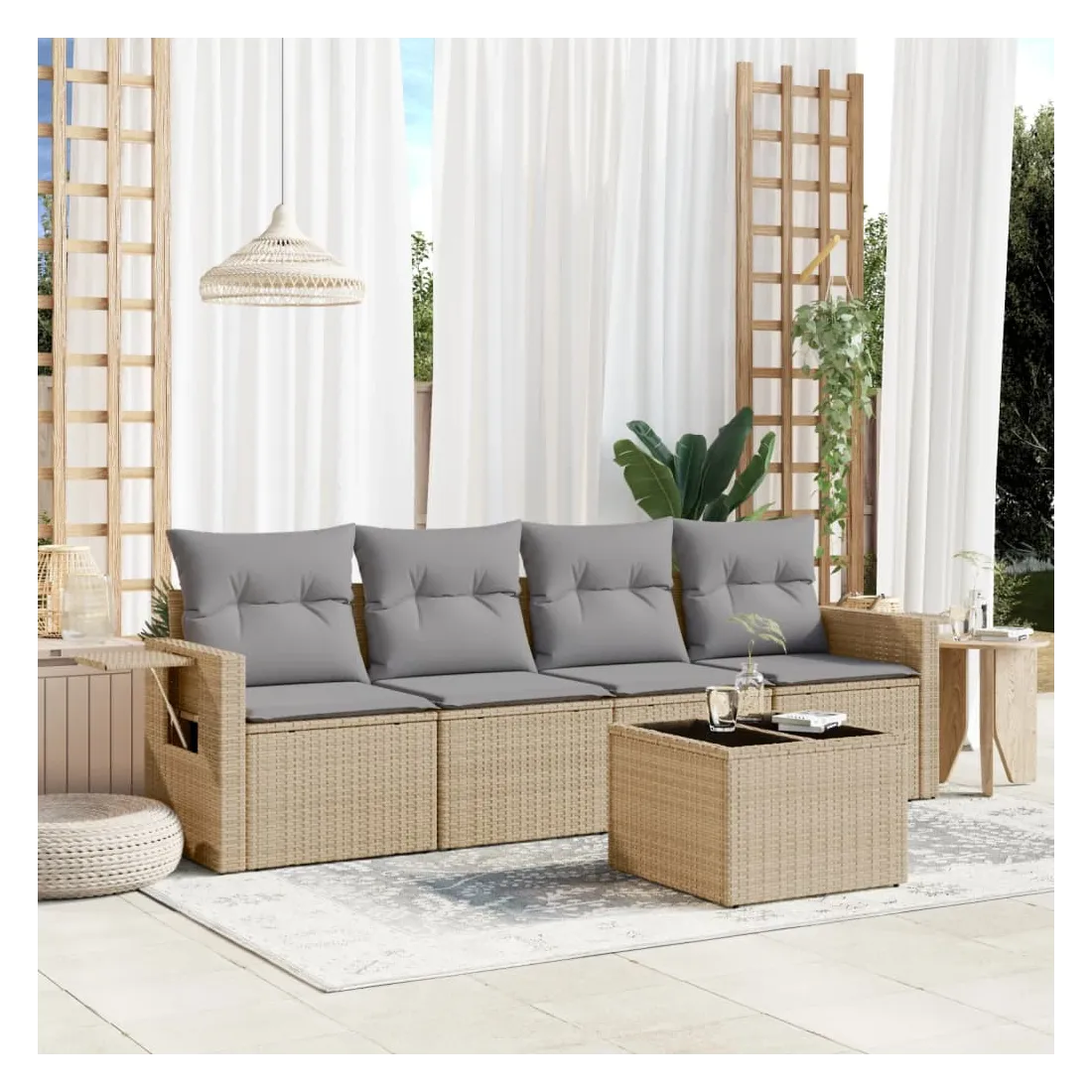 Cet ensemble de canapés de jardin est le complément parfait de votre arrière-cour, terrasse ou patio, offrant un espace confortable et accueillant pour discuter avec la famille et les amis ou simplement se détendre et profiter de l'extérieur. Matériau durable : la résine tressée, également connue sous le nom de poly rotin, est un matériau synthétique solide et nécessitant peu d'entretien qui ressemble au rotin naturel. Il est léger, facile à nettoyer et couramment utilisé pour les meubles d'extérieur en raison de sa durabilité et de ses propriétés de résistance aux intempéries.Dessus en verre : le dessus de la table d'extérieur est fabriqué en verre trempé solide et durable, ce qui le rend facile à nettoyer avec un chiffon humide et ajoute une touche d'élégance à votre espace extérieur. Table d'appoint pratique : ce mobilier d'extérieur comprend des tables d'appoint pliables avec un ressort à gaz sur les accoudoirs, offrant des endroits pratiques pour garder vos essentiels à portée de main. Expérience d'assise confortable : ce mobilier d'extérieur, doté de coussins épais, offre une expérience d'assise confortable.Conception modulaire : cet ensemble de meubles d'extérieur a une conception modulaire, ce qui le rend complètement flexible et facile à déplacer, afin que vous puissiez créer un agencement de meubles d'extérieur personnalisé. Bon à savoir :Pour que vos meubles d'extérieur restent beaux, nous vous recommandons de les protéger avec une housse imperméable.