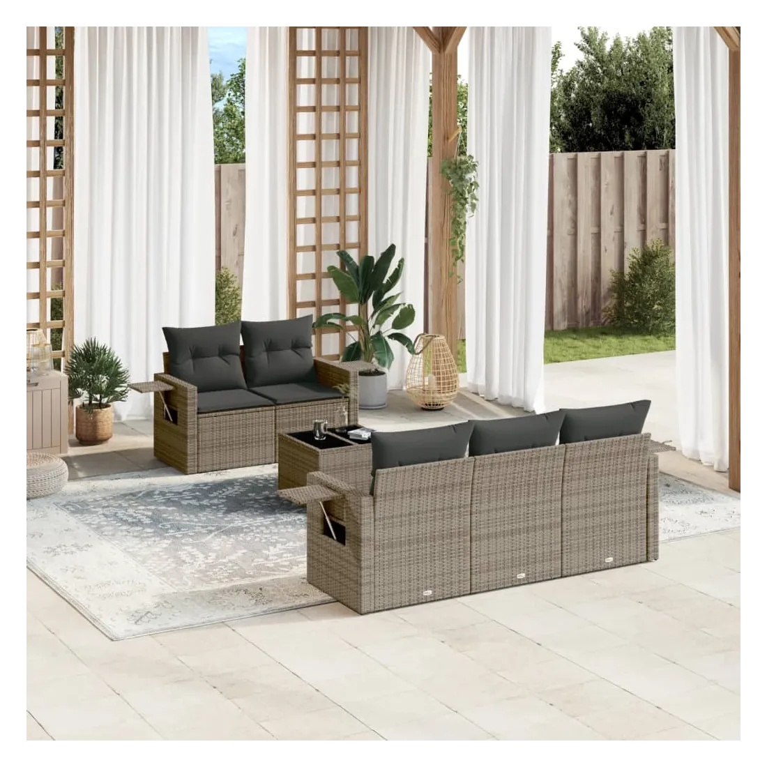Cet ensemble de canapés de jardin est le complément parfait de votre arrière-cour, terrasse ou patio, offrant un espace confortable et accueillant pour discuter avec la famille et les amis ou simplement se détendre et profiter de l'extérieur. Matériau durable : la résine tressée, également connue sous le nom de poly rotin, est un matériau synthétique solide et nécessitant peu d'entretien qui ressemble au rotin naturel. Il est léger, facile à nettoyer et couramment utilisé pour les meubles d'extérieur en raison de sa durabilité et de ses propriétés de résistance aux intempéries.Dessus en verre : le dessus de la table d'extérieur est fabriqué en verre trempé solide et durable, ce qui le rend facile à nettoyer avec un chiffon humide et ajoute une touche d'élégance à votre espace extérieur. Table d'appoint pratique : ce mobilier d'extérieur comprend des tables d'appoint pliables avec un ressort à gaz sur les accoudoirs, offrant des endroits pratiques pour garder vos essentiels à portée de main. Expérience d'assise confortable : ce mobilier d'extérieur, doté de coussins épais, offre une expérience d'assise confortable.Conception modulaire : cet ensemble de meubles d'extérieur a une conception modulaire, ce qui le rend complètement flexible et facile à déplacer, afin que vous puissiez créer un agencement de meubles d'extérieur personnalisé. Bon à savoir :Pour que vos meubles d'extérieur restent beaux, nous vous recommandons de les protéger avec une housse imperméable.