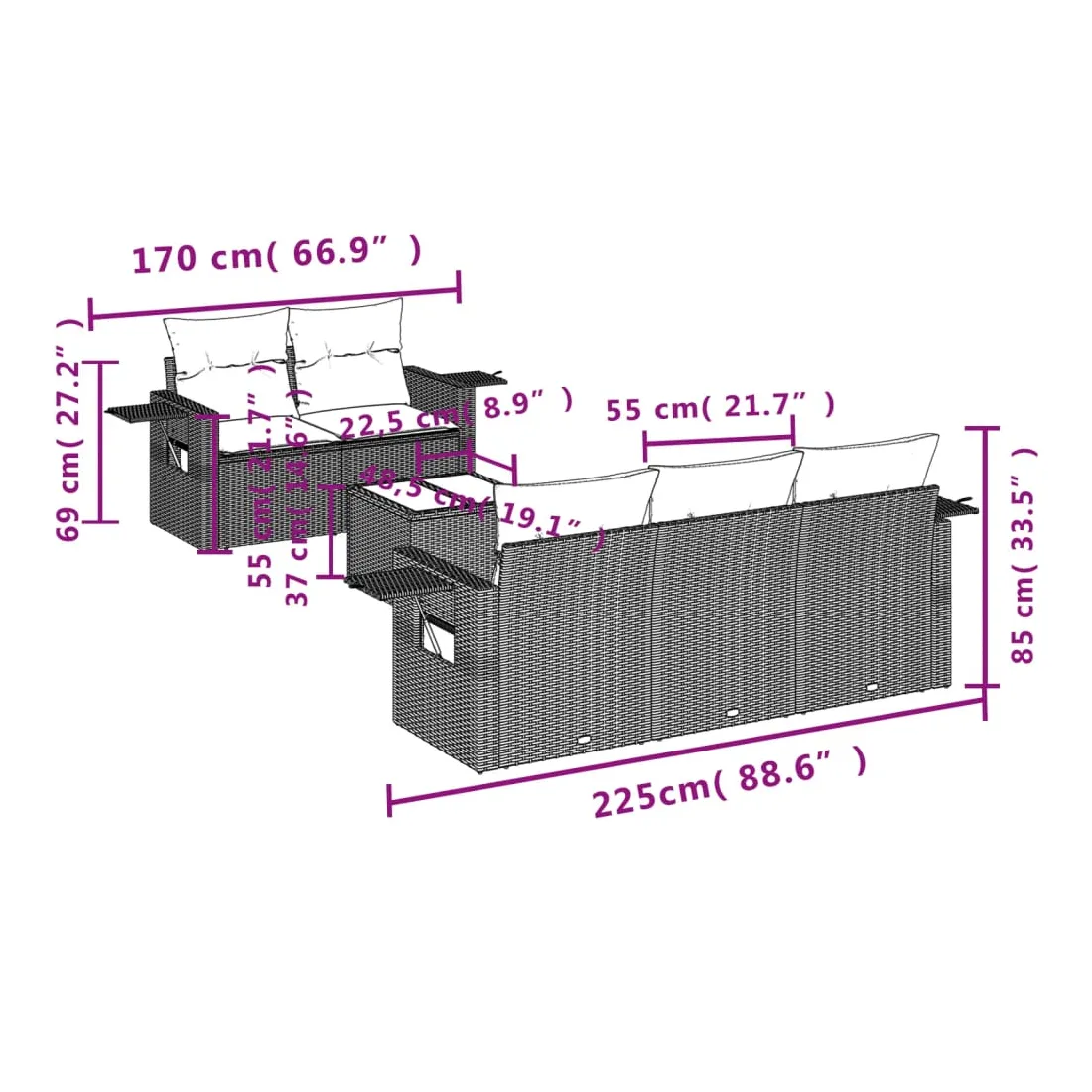 Cet ensemble de canapés de jardin est le complément parfait de votre arrière-cour, terrasse ou patio, offrant un espace confortable et accueillant pour discuter avec la famille et les amis ou simplement se détendre et profiter de l'extérieur. Matériau durable : la résine tressée, également connue sous le nom de poly rotin, est un matériau synthétique solide et nécessitant peu d'entretien qui ressemble au rotin naturel. Il est léger, facile à nettoyer et couramment utilisé pour les meubles d'extérieur en raison de sa durabilité et de ses propriétés de résistance aux intempéries.Dessus en verre : le dessus de la table d'extérieur est fabriqué en verre trempé solide et durable, ce qui le rend facile à nettoyer avec un chiffon humide et ajoute une touche d'élégance à votre espace extérieur. Table d'appoint pratique : ce mobilier d'extérieur comprend des tables d'appoint pliables avec un ressort à gaz sur les accoudoirs, offrant des endroits pratiques pour garder vos essentiels à portée de main. Expérience d'assise confortable : ce mobilier d'extérieur, doté de coussins épais, offre une expérience d'assise confortable.Conception modulaire : cet ensemble de meubles d'extérieur a une conception modulaire, ce qui le rend complètement flexible et facile à déplacer, afin que vous puissiez créer un agencement de meubles d'extérieur personnalisé. Bon à savoir :Pour que vos meubles d'extérieur restent beaux, nous vous recommandons de les protéger avec une housse imperméable.