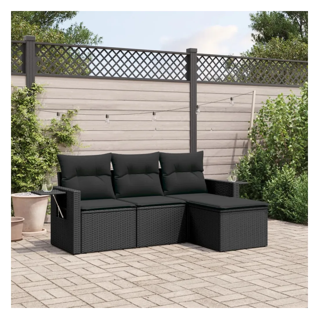 Cet ensemble de canapés de jardin est le complément parfait de votre arrière-cour, terrasse ou patio, offrant un espace confortable et accueillant pour discuter avec la famille et les amis ou simplement se détendre et profiter de l'extérieur. Matériau durable : la résine tressée, également connue sous le nom de poly rotin, est un matériau synthétique solide et nécessitant peu d'entretien qui ressemble au rotin naturel. Il est léger, facile à nettoyer et couramment utilisé pour les meubles d'extérieur en raison de sa durabilité et de ses propriétés de résistance aux intempéries. Table d'appoint pratique : ce mobilier d'extérieur comprend des tables d'appoint pliables avec un ressort à gaz sur les accoudoirs, offrant des endroits pratiques pour garder vos essentiels à portée de main. Expérience d'assise confortable : ce mobilier d'extérieur, doté de coussins épais, offre une expérience d'assise confortable. Housse amovible et lavable : ces coussins de siège sont dotés de housses amovibles pour un lavage et un entretien faciles.Conception modulaire : cet ensemble de meubles d'extérieur a une conception modulaire, ce qui le rend complètement flexible et facile à déplacer, afin que vous puissiez créer un agencement de meubles d'extérieur personnalisé. Bon à savoir :Pour que vos meubles d'extérieur restent beaux, nous vous recommandons de les protéger avec une housse imperméable.
