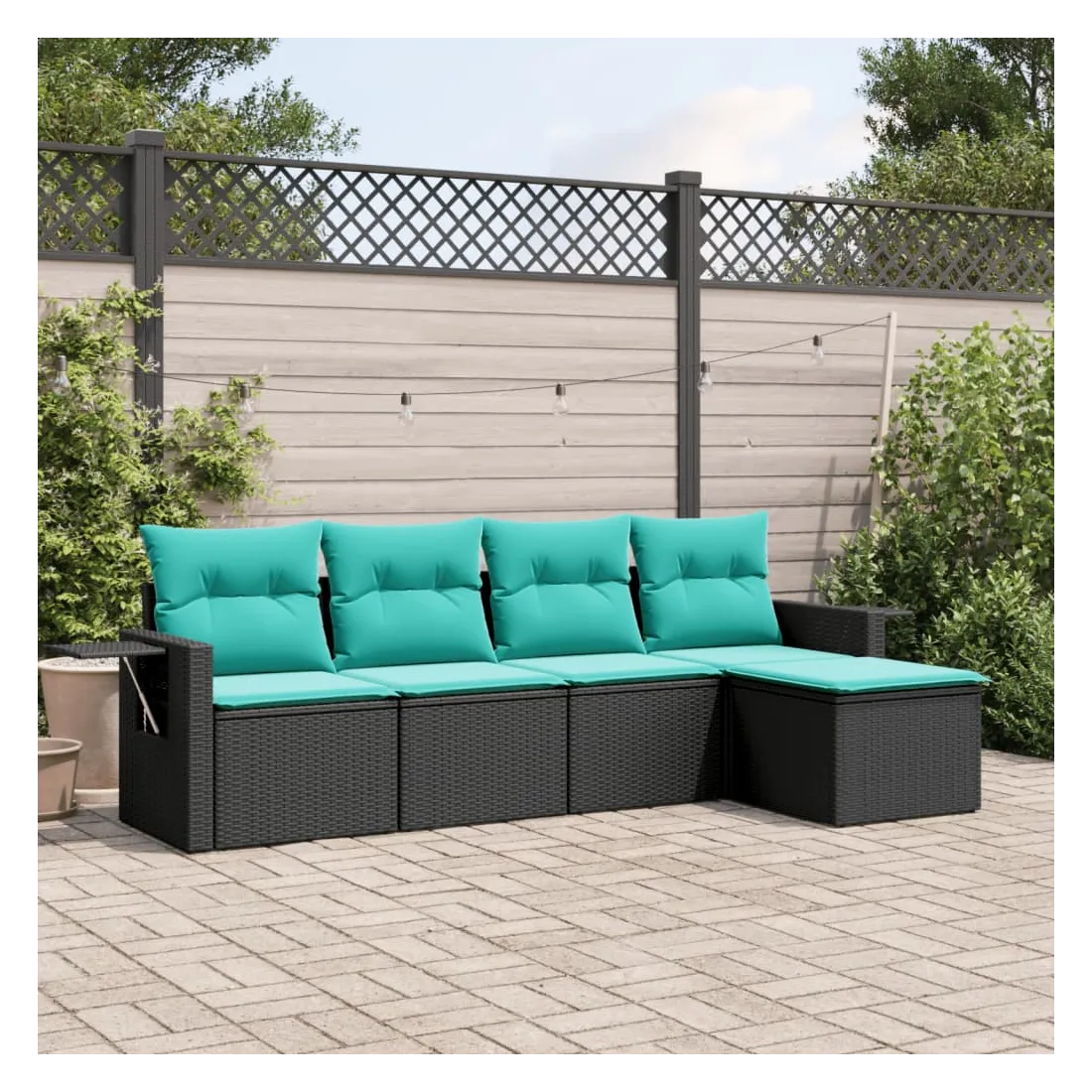 Cet ensemble de canapés de jardin est le complément parfait de votre arrière-cour, terrasse ou patio, offrant un espace confortable et accueillant pour discuter avec la famille et les amis ou simplement se détendre et profiter de l'extérieur. Matériau durable : la résine tressée, également connue sous le nom de poly rotin, est un matériau synthétique solide et nécessitant peu d'entretien qui ressemble au rotin naturel. Elle est légère, facile à nettoyer et couramment utilisée pour les meubles d'extérieur en raison de sa durabilité et de ses propriétés de résistance aux intempéries. Table d'appoint pratique : ce mobilier d'extérieur comprend des tables d'appoint pliables avec un ressort à gaz sur les accoudoirs, offrant des endroits pratiques pour garder vos essentiels à portée de main. Expérience d'assise confortable : ce mobilier d'extérieur, doté de coussins épais, offre une expérience d'assise confortable. Housse amovible et lavable : ces coussins de siège sont dotés de housses amovibles pour un lavage et un entretien faciles.Conception modulaire : cet ensemble de meubles d'extérieur a une conception modulaire, ce qui le rend complètement flexible et facile à déplacer, afin que vous puissiez créer un agencement de meubles d'extérieur personnalisé. Bon à savoir :Pour que vos meubles d'extérieur restent beaux, nous vous recommandons de les protéger avec une housse imperméable.