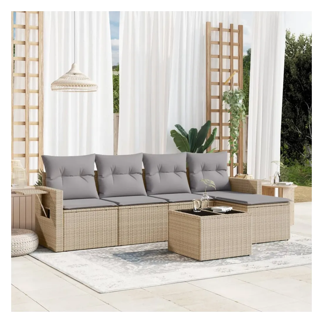 Cet ensemble de canapés de jardin est le complément parfait de votre arrière-cour, terrasse ou patio, offrant un espace confortable et accueillant pour discuter avec la famille et les amis ou simplement se détendre et profiter de l'extérieur. Matériau durable : la résine tressée, également connue sous le nom de poly rotin, est un matériau synthétique solide et nécessitant peu d'entretien qui ressemble au rotin naturel. Il est léger, facile à nettoyer et couramment utilisé pour les meubles d'extérieur en raison de sa durabilité et de ses propriétés de résistance aux intempéries.Dessus en verre : le dessus de la table d'extérieur est fabriqué en verre trempé solide et durable, ce qui le rend facile à nettoyer avec un chiffon humide et ajoute une touche d'élégance à votre espace extérieur. Table d'appoint pratique : ce mobilier d'extérieur comprend des tables d'appoint pliables avec un ressort à gaz sur les accoudoirs, offrant des endroits pratiques pour garder vos essentiels à portée de main. Expérience d'assise confortable : ce mobilier d'extérieur, doté de coussins épais, offre une expérience d'assise confortable.Conception modulaire : cet ensemble de meubles d'extérieur a une conception modulaire, ce qui le rend complètement flexible et facile à déplacer, afin que vous puissiez créer un agencement de meubles d'extérieur personnalisé. Bon à savoir :Pour que vos meubles d'extérieur restent beaux, nous vous recommandons de les protéger avec une housse imperméable.